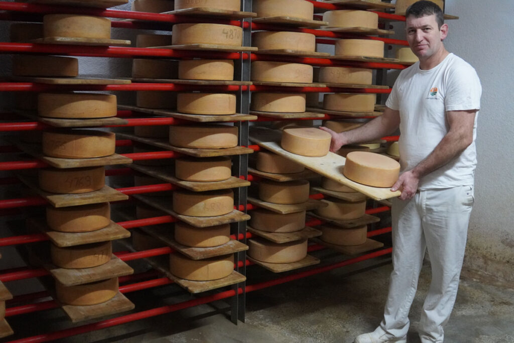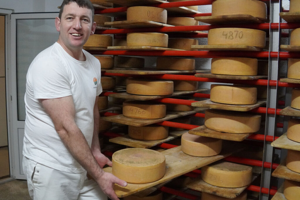 A sajttal kapcsolatos beszélgetésünk végén szólaltatjuk meg a sajt igazi szakértőjét, Portik-Hegyi Lorándot, aki a kis mintagazdaság teheneitől kifejt tejből egymaga állítja elő a minőségi terméket. Vele a sajtműhelyben, majd a sajtpincében beszélgettünk.