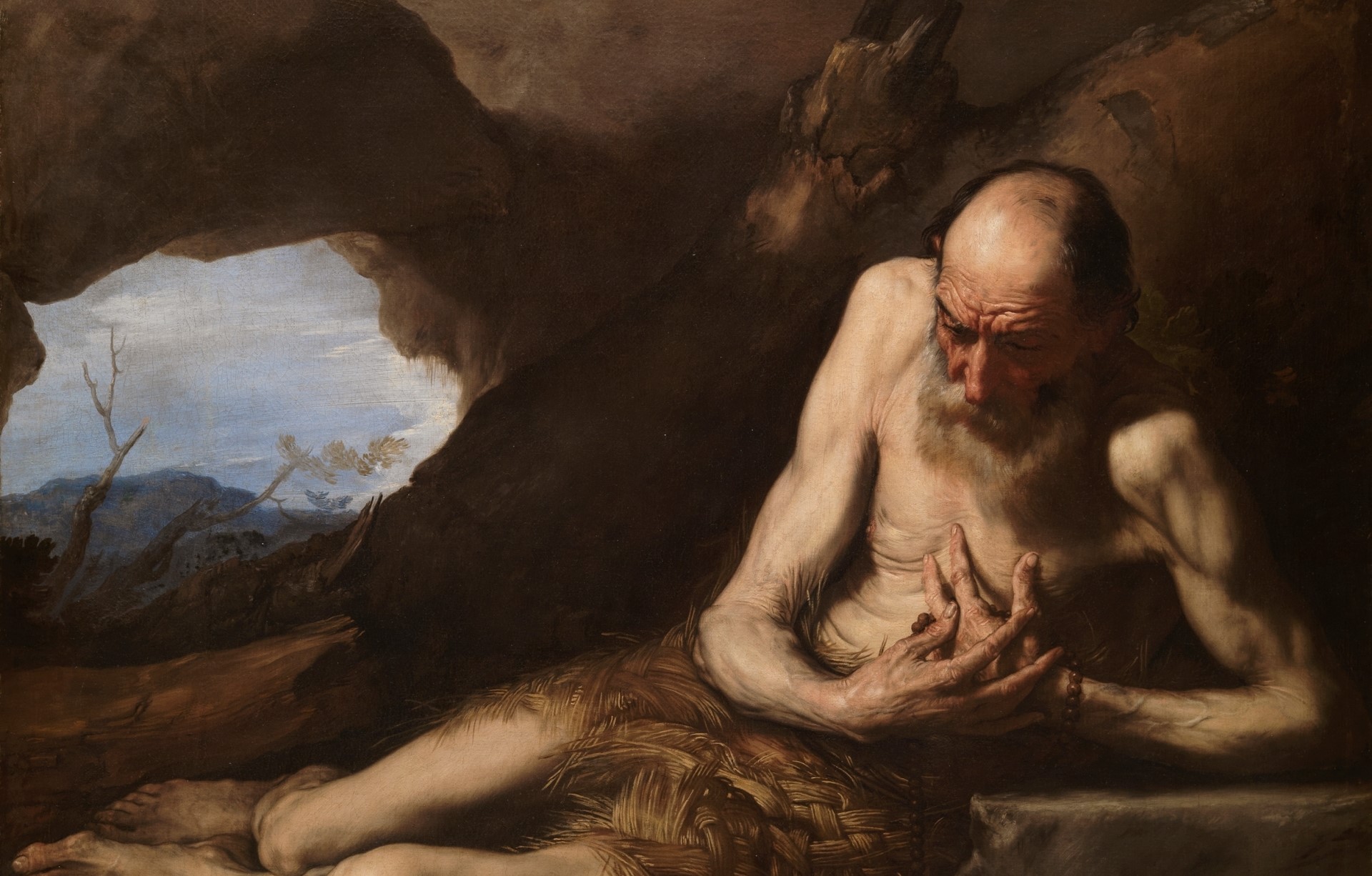 Szent Pál gyerekkorában nem nélkülözött, hiszen a hagyomány szerint vagyonos szülők gyermekeként látta meg a napvilágot. Miután 16 éves korában elvesztette szüleit és húgát férjhez adták, az élete viharossá vált. A Decius-féle keresztényüldözés elől menekülve egy barlangra találva az ideiglenes menedék végső otthonává vált. Imádságos rejtett élete sokak számára a keresztény életideált jelenítette meg. Ribera a remetét elhagyatottságában, a barlang sötétségében ábrázolja, ahol egy belső fényforrás által nyer megvilágítást mint egyetlen ábrázolt alak. Teste erőteljes kontrasztot képez az őt körülvevő háttérrel szemben, amely drámai hatást kelt. A barlang nyílásán keresztül egy elhagyatottnak tűnő tájrészlet rajzolódik ki, megtörve a monokróm színhatást. A művész Szent Pált olyan ruhában ábrázolja, amely pálmalevelekből készült, ahogy azt a legendák is említik. Bár nyugalmi testhelyzetben látható a remete, kezei és tekintete elmélyült imádságot tükröznek, amely egyfajta feszült várakozásként hat. Előtte nincs más, mint egy emberi koponya, amely az elmúlást és a végességet szimbolizálja.