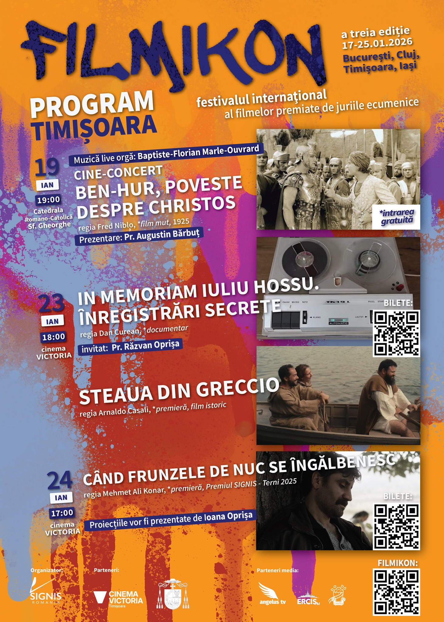 Temesváron a Szent György római katolikus székesegyházban várják az érdeklődőket a A Ben-Hur: A Tale of the Christ mozikoncertre január 19-én, hétfőn 19 órakor. Az eseményt ismerteti Augustin Bărbuț plébános. A film élő zenei kíséretét ugyancsak Baptiste-Florian Marle-Ouvrard francia orgonaművész biztosítja.