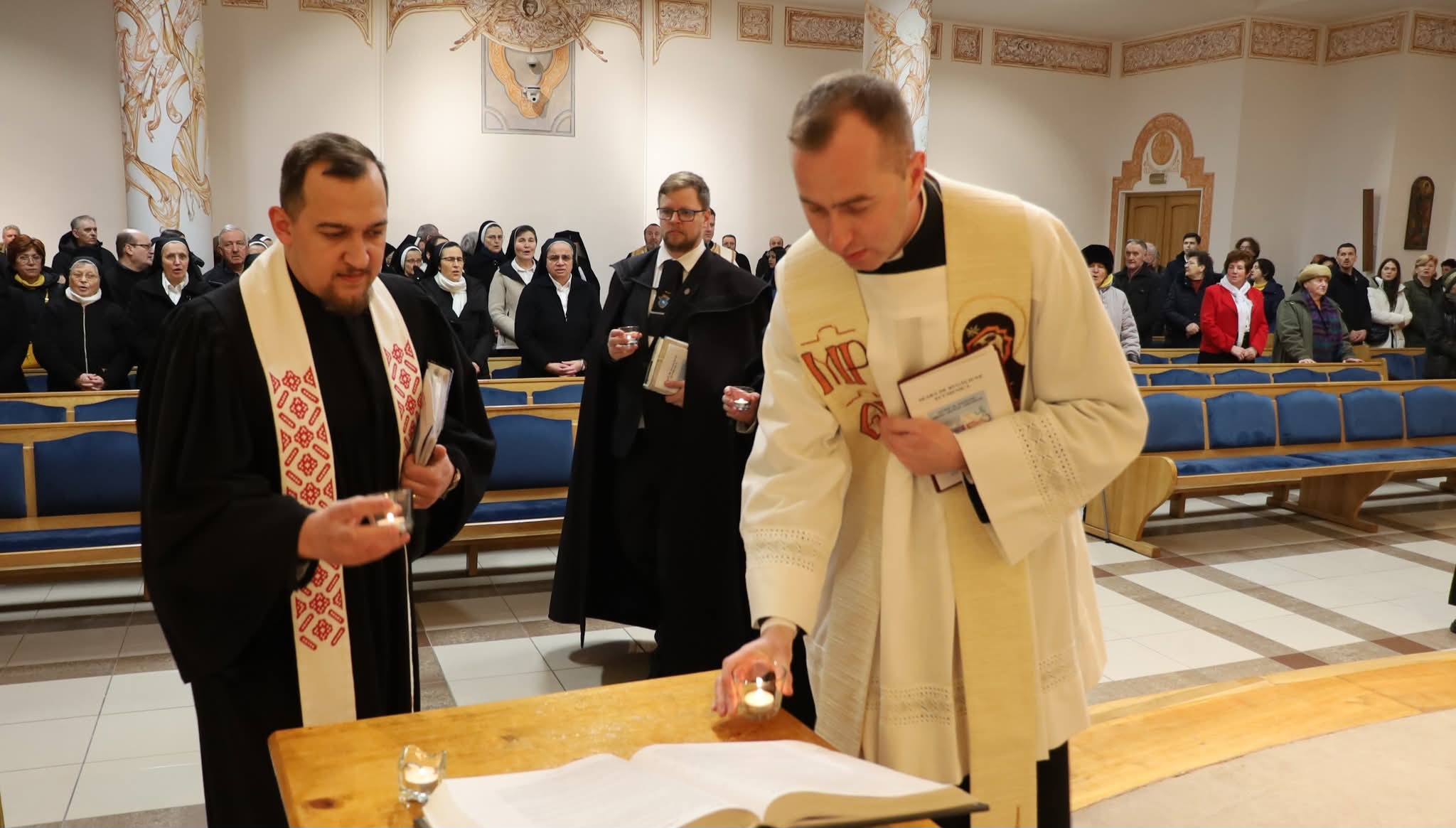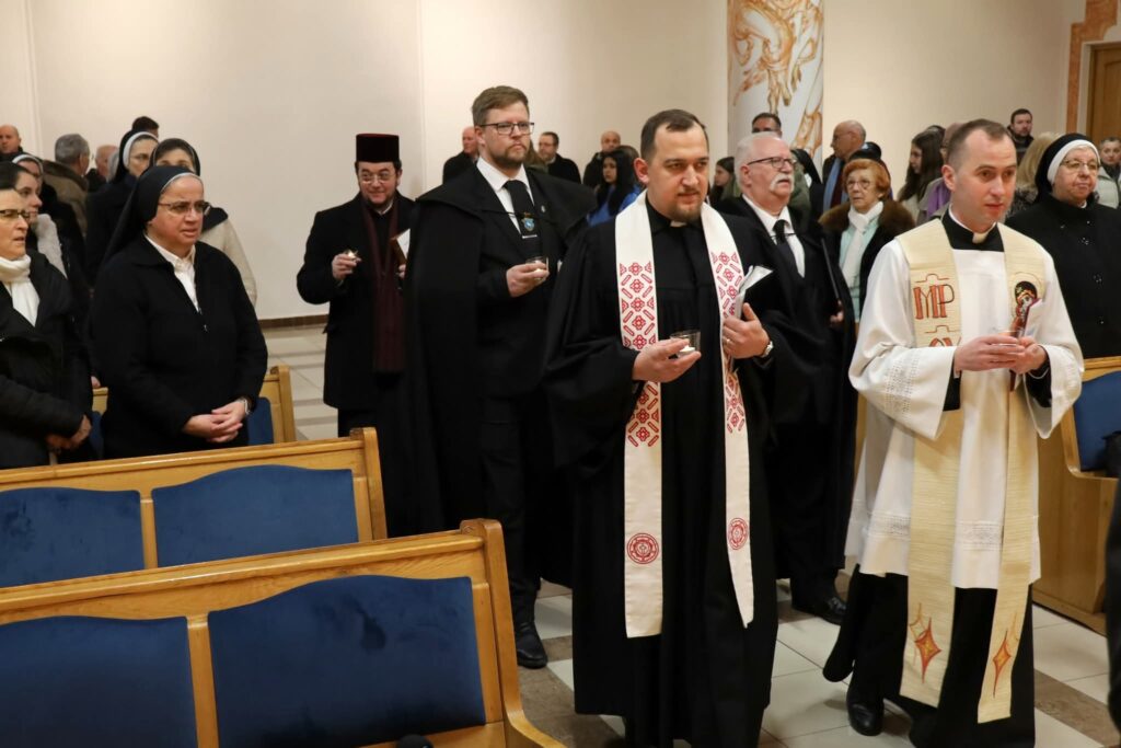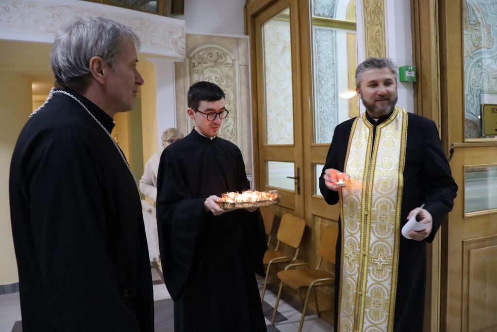 Gyertyákat helyeztek el, miután együtt vonultak be a résztvevők a Szent József-kápolnába, a házigazdákkal együtt az est vendégei, a különböző felekezetek képviselői: Andrei Andreicuţ ortodox érsek-metropolita; Bőjte Csongor római katolikus segédlelkész, Szegedi László református püspökhelyettes; Dinka Levente evangélikus lelkész; Elekes Zsolt unitárius lelkész.