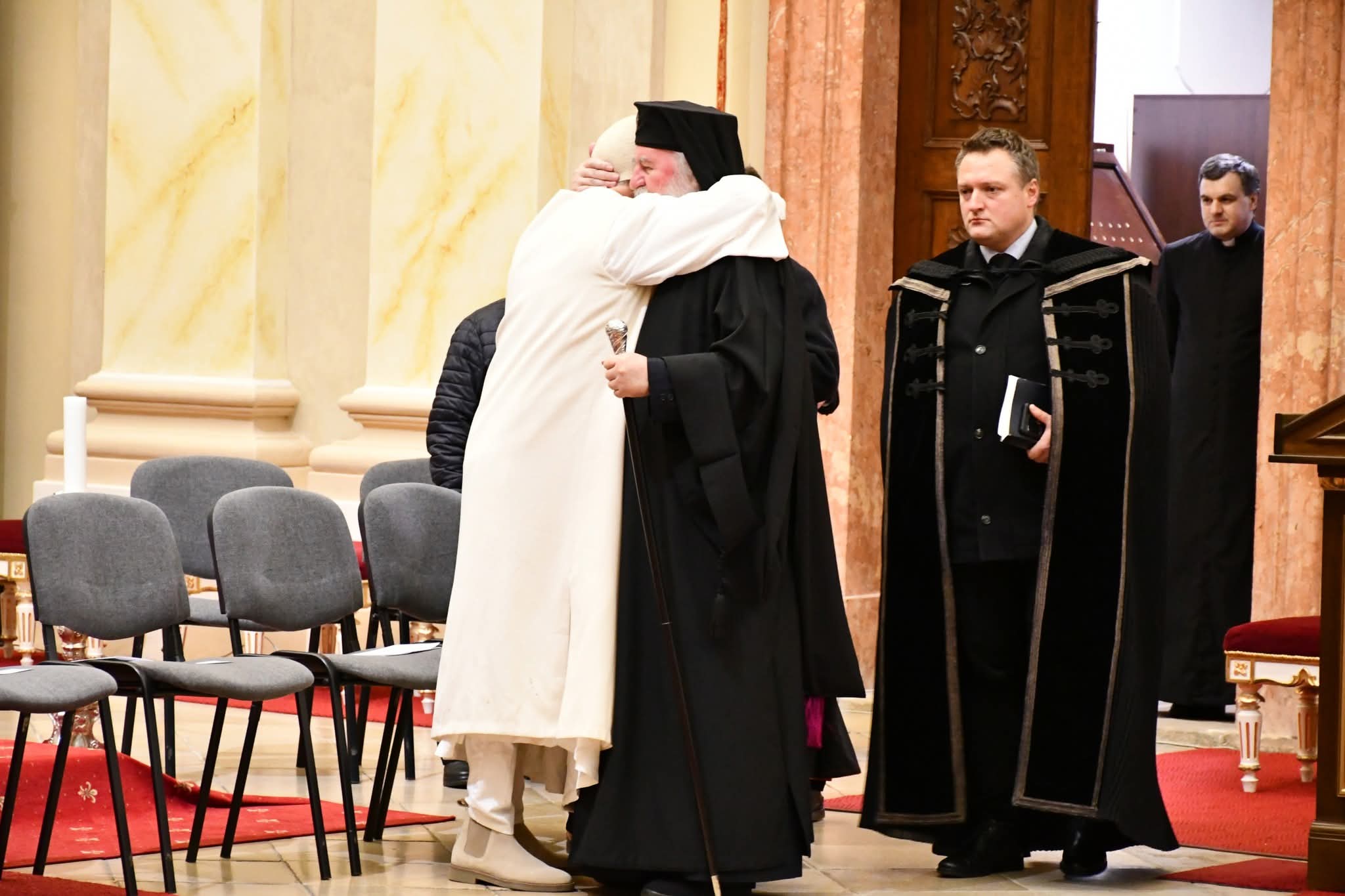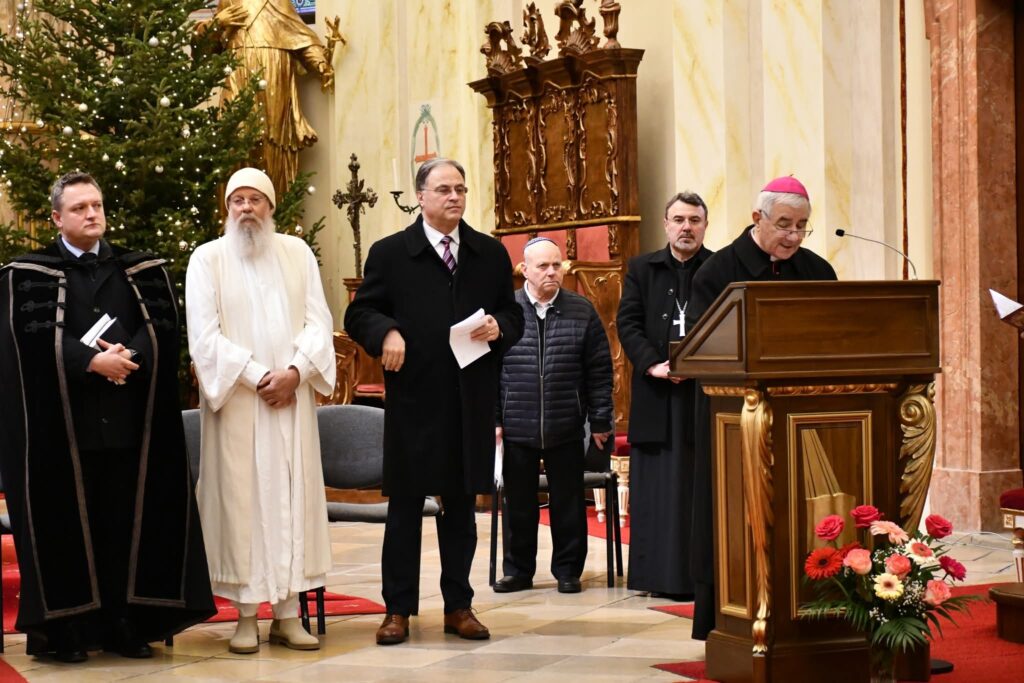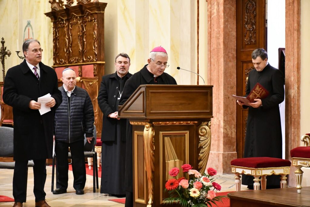 Ezt követően, a programnak megfelelően Ioan Călin Bot lugosi püspök lépett a mikrofonhoz. „Az én hozzászólásom ehhez a találkozóhoz egy kérdésből indul ki: a világban és a társadalomban, amelyben élünk, általánosságban mit tapasztalunk? Úgy gondolom, többek között nagyon sok bizonytalanságot: politikai téren, a kapcsolatok tartósságának bizonytalanságát, bizonytalanságot a szükséges erőforrások tekintetében, az alapvető értékek, a béke és a biztonság terén. Felmerül a kérdés: mire támaszkodhatunk az életben, mi marad állandó? Támaszkodhatunk a szüleinkre, amíg élnek és egészségesek. Támaszkodhatunk az igaz barátokra, a saját erőnkre, és természetesen – mi, akik itt vagyunk – Istenre támaszkodunk” – fogalmazott a lugosi püspök. Az evangélikus egyház képviseletében Walther Sinn lelkipásztor német nyelven szólt a jelenlévőkhöz, és felidézte az első nikaiai egyetemes zsinatot, amelynek 1700. évfordulóját 2025-ben ünnepelték világszerte, továbbá megemlítette, hogy ma is jelentős számú keresztényt üldöznek a hitük miatt. „Az egyház egysége nem egyformaságot jelent, hanem sokkal inkább a sokféleség kölcsönös elismerését annak teljes értékében és ragyogásában” – hangsúlyozta az evangélikus lelkipásztor, majd az imanyolcad előkészítő szövegének szavaival zárta beszédét: „A Jézus Krisztus által hozott üdvösségbe vetett reményünk e közösség alapköve.”
