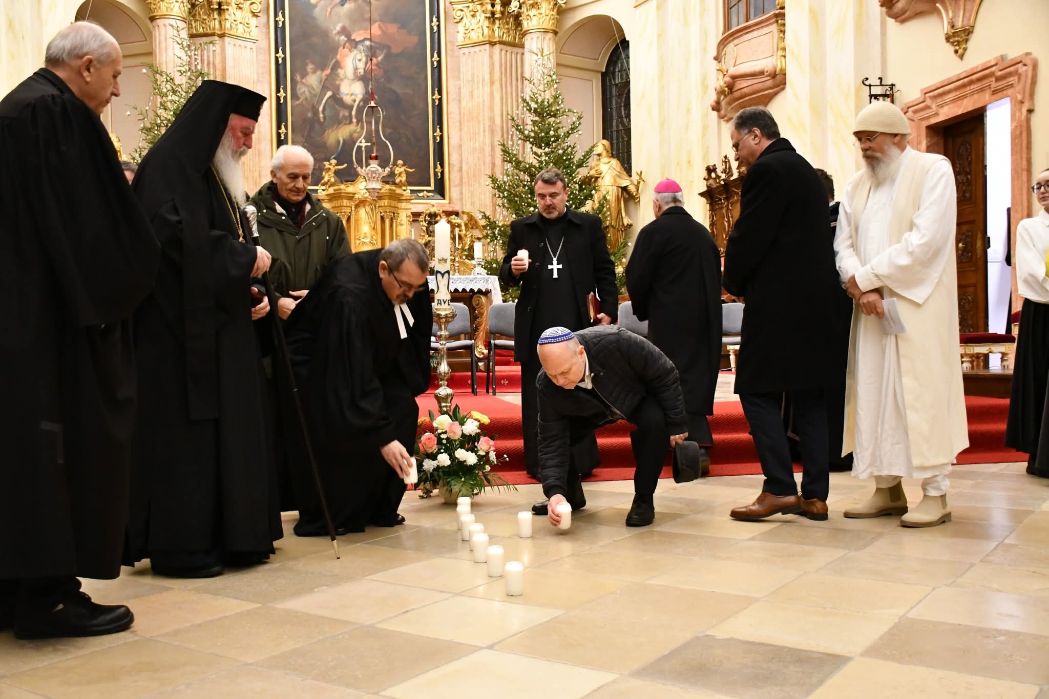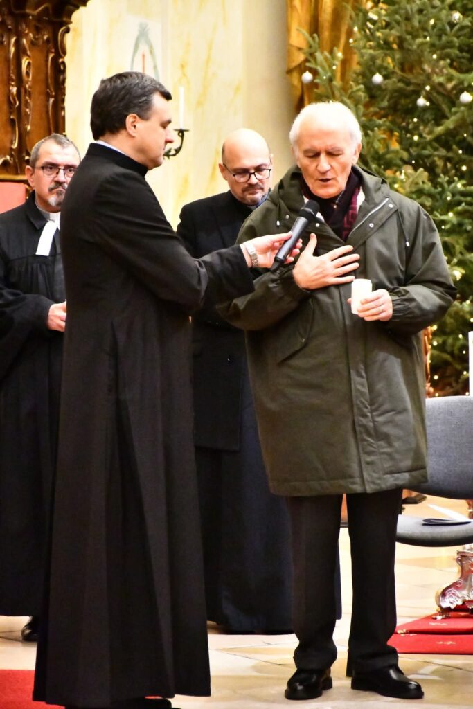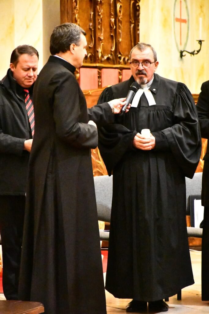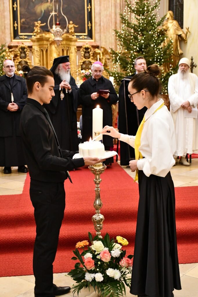 Végezetül két fiatal minden felekezeti képviselőnek egy-egy égő gyertyát nyújtott át, amelyekkel a szertartás befejezéseként keresztet formáltak a templom oltára előtt. A keresztények közös imáját, a Miatyánkot a jelen lévő hívek román, német és magyar nyelven mondták el, majd mindegyik vallásfelekezet elöljárója áldásban részesítette az egybegyűlteket.