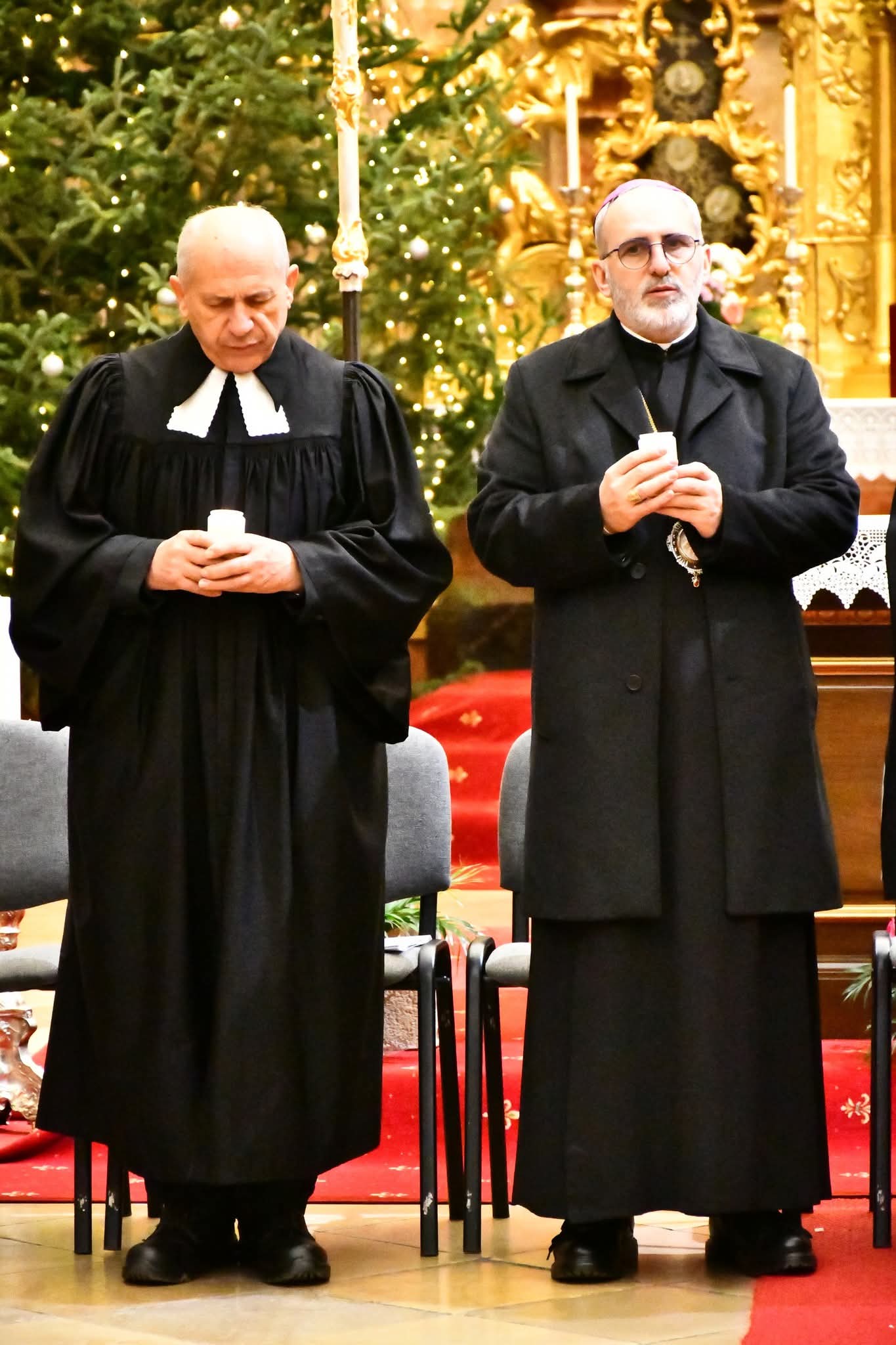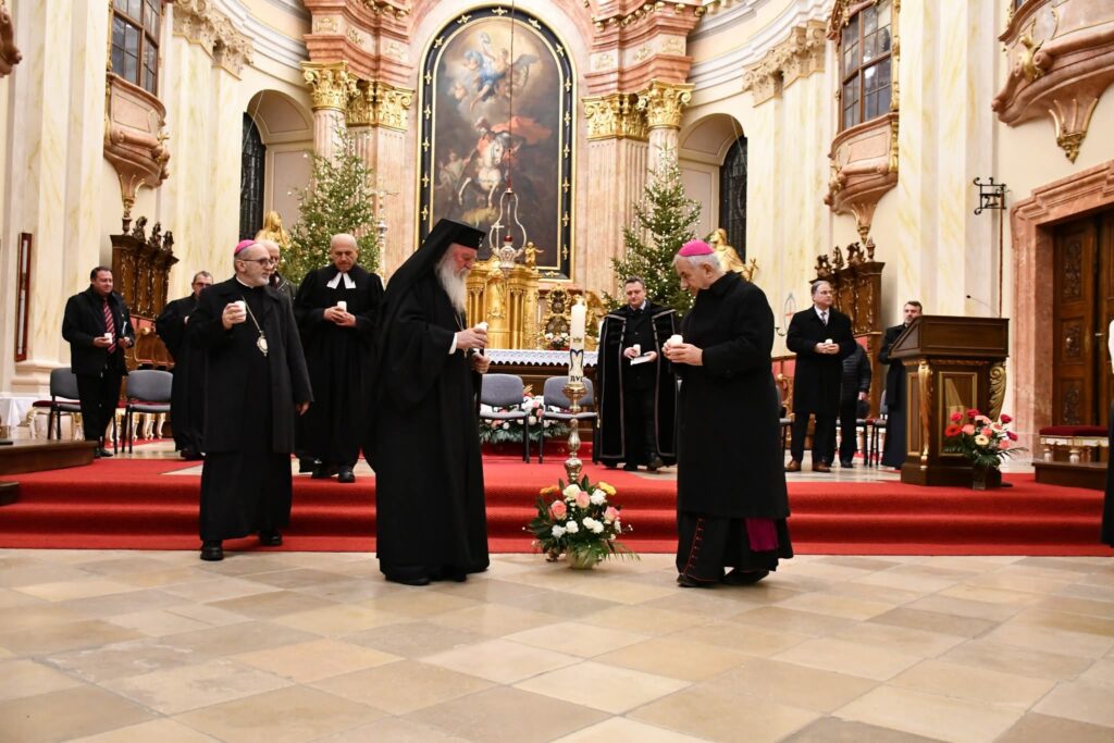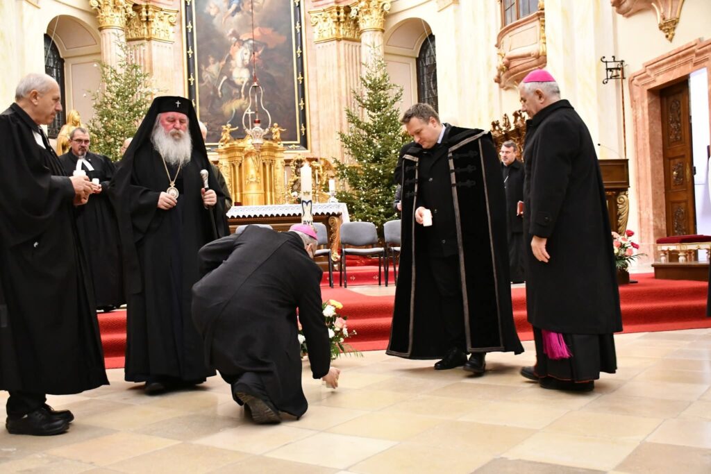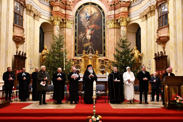 Végezetül két fiatal minden felekezeti képviselőnek egy-egy égő gyertyát nyújtott át, amelyekkel a szertartás befejezéseként keresztet formáltak a templom oltára előtt. A keresztények közös imáját, a Miatyánkot a jelen lévő hívek román, német és magyar nyelven mondták el, majd mindegyik vallásfelekezet elöljárója áldásban részesítette az egybegyűlteket.