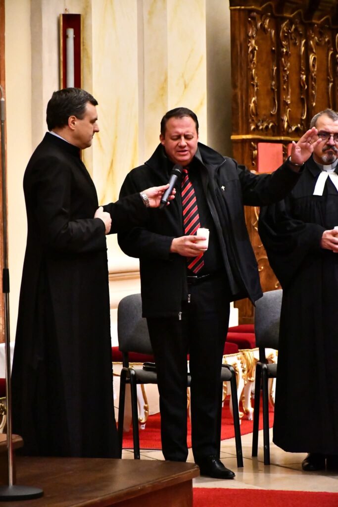 A temesvár-belvárosi református gyülekezet lelkipásztora, Demeter Sándor románul és magyarul szólt a jelenlévőkhöz: „Egy kérdéssel szeretném kezdeni: miért gyűltünk össze ezen a vasárnap délutánon itt, a templomban? Miért volt fontos, hogy eljöjjünk, és együtt álljunk meg Isten színe előtt? Pál apostol válasza egyszerű, mégis kihívást jelent: azért, mert erre kaptunk meghívást. Az apostol arra buzdít bennünket, hogy méltón éljünk ahhoz a hivatáshoz, amelyet Krisztusban kaptunk. Ez a közösségre szóló meghívás – olyan közösségre, amelynek alapja az alázat, a szelídség, a türelem és a szeretet. Ezek nélkül nincs egység, csak egymás mellett élés. Pál apostol hangsúlyozza: törekednünk kell megőrizni a Lélek egységét a béke kötelékében. Figyeljünk a szavaira: nem nekünk kell megteremtenünk az egységet – Krisztus már megtette ezt. A mi feladatunk az, hogy őrizzük és megéljük.”