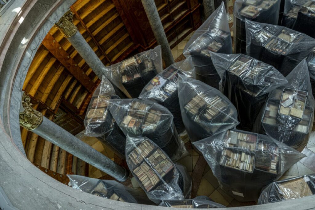 A teremkönyvtárban a 16. század végétől a 20. század végéig kiadott, nyomtatott kötetek találhatók. Az egyes kötetek érintettsége nagyon eltér: van, amelyiken egyetlen fúrásnyom található és olyan is, amelyet többféle és súlyosabb behatás ért. Az irányító hatóságok bevonásával kidolgoznak egy tervet a legfontosabb sérült könyvek egyedi restaurálásának menetrendjére.