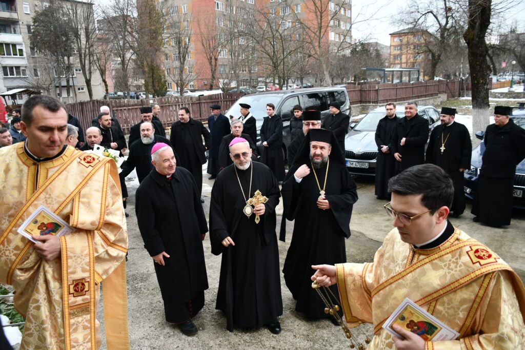 Az ökumenikus ünneplést 17 órakor Ioan Călin Bot lugosi görögkatolikus püspök nyitotta meg a „Krisztus közöttünk!” köszöntéssel, amelyre a jelenlévők válasza: „Van és lesz!” A főpásztor ezt követően bemutatta a templomot, kiemelve az udvaron található Valeriu Traian Frențiu boldog vértanú püspök mellszobrát. ,,Ezek a találkozások egyre természetesebbé válnak, és mindinkább testvérinek érezzük őket” – hangsúlyozta a lugosi püspök.