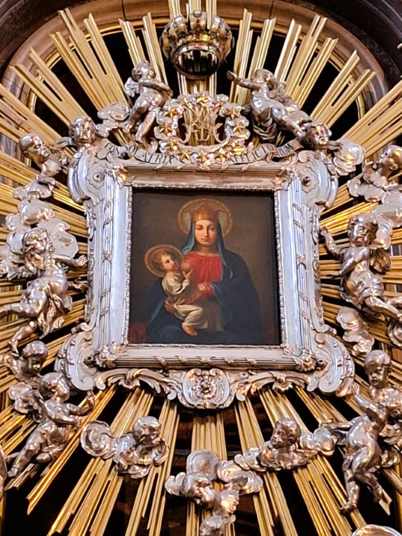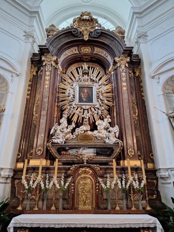 A Triviglianóból származó Josef Anton kapucinus szerzetes által Bécsbe hozott kegykép ajándék volt a császári család számára. A képhez kapcsolódó legendát a Realis, Curiositäten und Memorabilienlexikon von Wien (I, 379, S. 16f.) jegyzi fel. Erzsébet Krisztina császárné kívánságára a képet először a főoltáron helyezték el, majd később a Császári kápolnába került. Mária Terézia császárné gyakori látogatója volt a kápolnának, ahol szentáldozásban is részesült.”