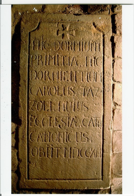 Borovszky Samu Magyarország vármegyéi és városai című művében a Temes vármegyei Merczyfalva településről a következőket olvashatjuk: „Az 1717. évi kincstári jegyzékben egy Kayragn nevű helységet találunk a temesvári kerületben, ahol ekkor 16 ház volt és azonosnak látszik az 1723–25. évi gróf Mercy-féle térképen ugyancsak e tájon megjelölt Karan-pusztával, a hova Engelshofen tábornok olaszokat és spanyolokat telepített s az új helységet, gróf Mercy Claudius Florimund után, Mercydorfnak nevezte el. De sem a spanyolok, sem az olaszok nem tudták az itteni éghajlatot megszokni s így csakhamar kipusztultak; az a kevés olasz család, mely itt maradt, idővel beleolvadt a németekbe, a kik az 1764–65. években költöztek be. Az 1761. évi hivatalos térképen Karan oder Mercydorf néven szerepel. A régi róm. kath. templom 1735-ben, a mostani pedig 1788-ban épült. A községet sok csapás érte. 1738-ban a pestis pusztított benne; 1823-ban, szélvihar tette tönkre az egész termést, 1829-ben egy hóviharnak az egész legelő állatállomány esett áldozatul, 1863-ban éhínség, 1869-ben pedig nagy tűzvész pusztított.” Az első merczyfalvi plébánosok egyike, az olasz Carlo Tazzoli a temesvári székeskáptalan tagja, a székesegyház kanonokja lett, ahol 1751-ben elhunyt. Ő volt az első klerikus, akit a székesegyház kriptájában temettek el, és akinek sírja mind a mai napig fennmaradt.