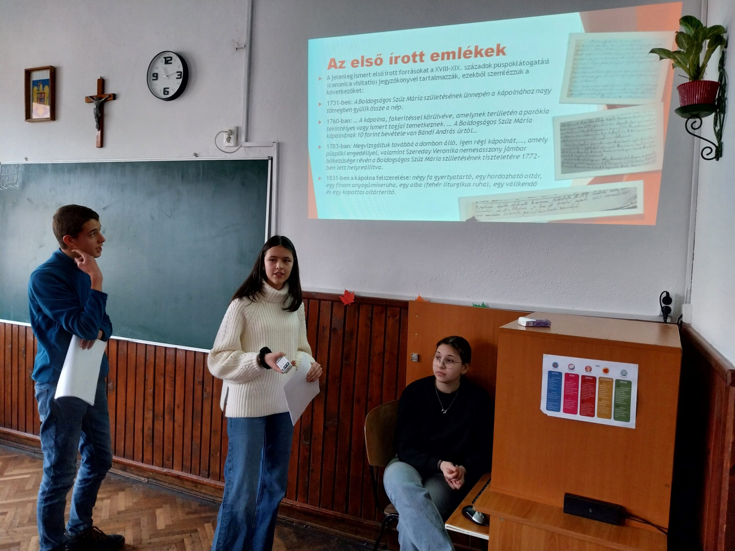 A csapat tagjai (Barabás Olivér, Bekő Dávid, Boros Panna, Elekes Sándor, Hajdó Kata és Szabó Kinga) Sebestyén István Elemér felkészítő tanár vezetésével még november végén munkához láttak. Hamar kiderült, hogy a kápolnáról szinte semmilyen ismert adat nem állt rendelkezésre. Az udvarhelyi római katolikus levéltárban és a helyi plébánia irattárában végzett kutatásokkal sikerült kideríteni, hogy egy ősi kápolnáról van szó, melyhez Kisboldogasszony ünnepén már a 18. század elején is özönlött a környékbeliek sokasága.