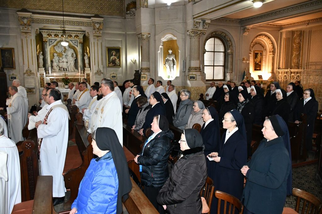 A temesvári egyházmegyében hagyományosan lelki nappal, a papság, valamint a megszentelt életet élők találkozójával ünneplik a megszentelt élet világnapját az ehhez a dátumhoz legközelebb eső szombaton – idén január 31‑én. A találkozónak a Gerhardinum Római Katolikus Teológiai Líceum adott otthont. A program 10 órakor ünnepi szentmisével kezdődött, amelyet Pál József Csaba megyés püspök mutatott be a temesvári piarista templomban a jelen lévő papok, szerzetesek és szerzetesnők részvételével, akik az egyházmegye szinte minden plébániájáról és közösségéből érkeztek. Koncelebrált Varga László kaposvári megyés püspök. A szentmise zenei szolgálatát Bajkai‑Fábián Róbert, a Szent György‑székesegyház orgonistája végezte.