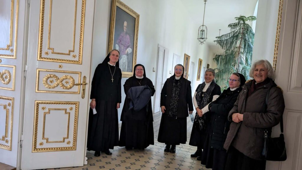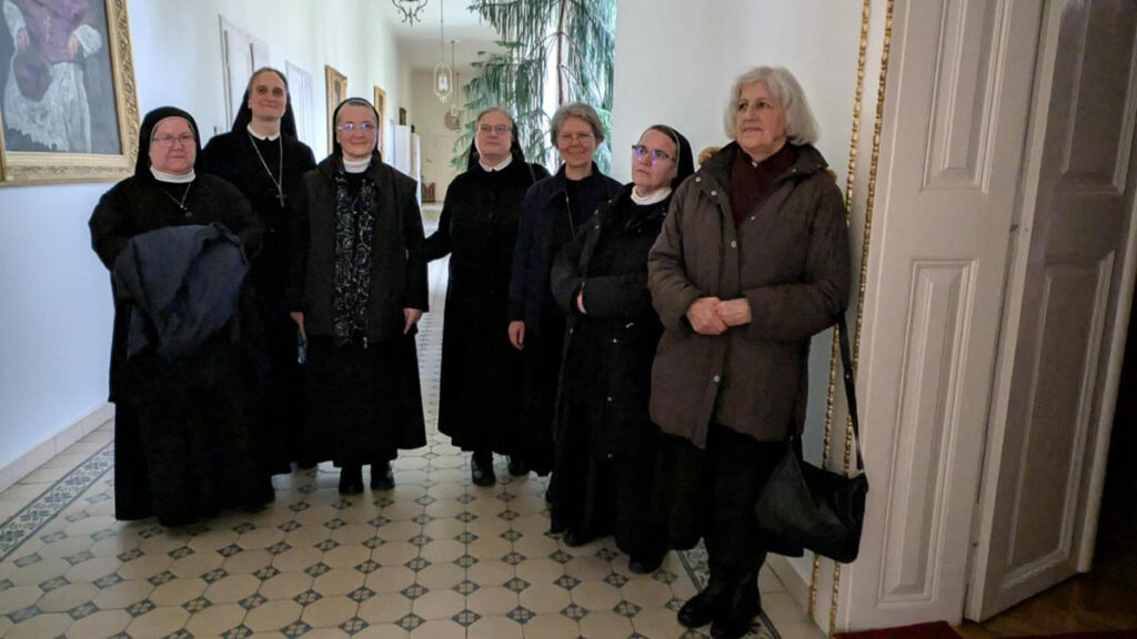 A délelőtt lezárásaként a résztvevők elimádkozták a déli zsolozsmát, majd a program közös ebéddel folytatódott, amihez csatlakoztak a piarista szerzetesek is, Carles Gil i Saguer SchP generális, Jacek Wolan SchP generális asszisztens, Zsódi Viktor SchP tartományfőnök és a piarista nővérek. A vendégek a szombat délelőtt folyamán, tartományi vizitáció keretében látogatást tettek a nagykárolyi piarista nővérek gyermekotthonában, ahol találkoztak az ott élő gyerekekkel, fiatalokkal és munkatársakkal. Ennek a látogatásnak a következő állomása volt a szatmári püspöki palota, ahol a jó hangulatú ebéd után a püspök vezetésével a szerzetesek a kápolnában közös imádságra gyűltek össze, hálát adva hivatásuk ajándékáért és kérve Isten áldását további életükre, szolgálatukra.