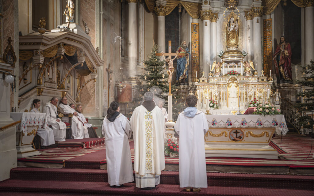 A szentmise után a szerzetesek együtt imádkozták a zsolozsma esti imaóráját.