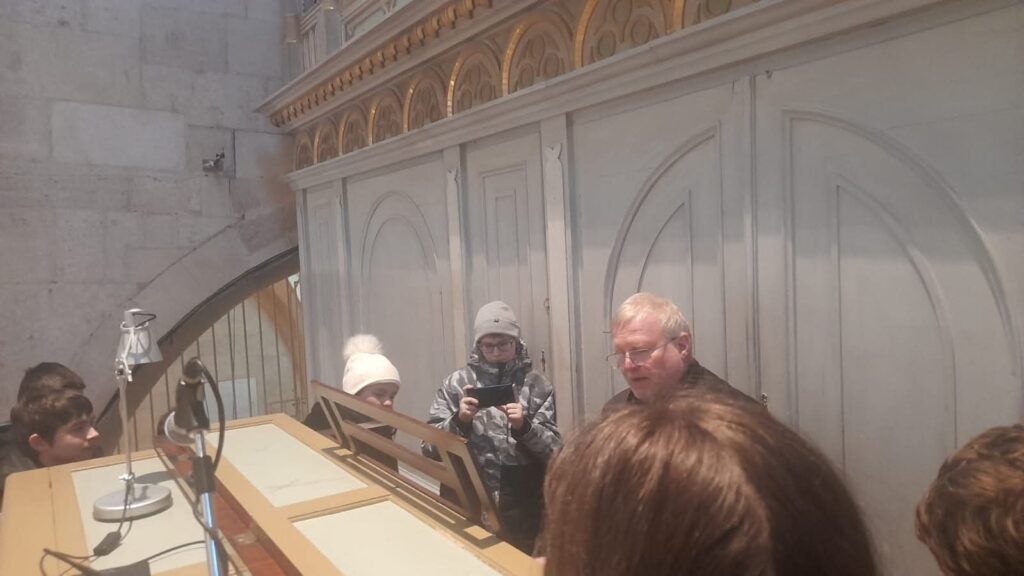 A szemléletes bemutató során a látogatók meghallgatták, hogyan csendülnek fel ugyanazok a dallamok különböző hangszíneken a különféle regiszterek megszólaltatásával. Az orgonában vannak különösen érzékeny sípok, amelyek a hőmérséklet és a páratartalom változásai miatt könnyen elhangolódhatnak, sőt az is előfordulhat, hogy egy szelep leragad, és a hangszer akkor is megszólal, amikor éppen nem játszik rajta senki. Az orgona „lelkét” rejtő szekrényben apró lécek és fenyőfa huzalok segítségével nyílnak és záródnak a sípok szelepei. Ezt az összetett húzó- és vonórendszert az orgona traktúrájának nevezik. Van olyan traktúraelem, amely meghaladja a tizenegy métert is.