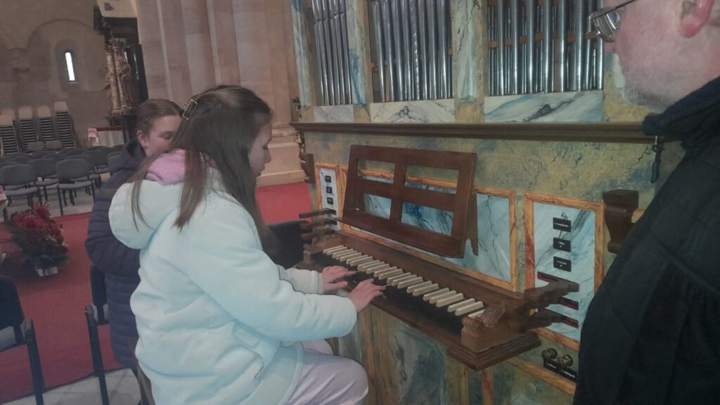 Különleges és tartalmas élmény volt Schneider Arnold kántor bemutatásában a székesegyházi orgonákat megismerni. Jövőre 150 éves a nagyorgona, annak felépítését, működését és gazdag hangzásvilágát mutatta be Schneider Arnold, valamint azt is, hogyan képes ugyanaz a dallam egészen különböző hangszíneken megszólalni. Ez Kolonics István 134. orgonája, pályafutása során ez a legnagyobb, viszont az orgonák sorában általánosságban közepes méretűnek számít. Szerkezete két fő egységből áll: a sípokat rejtő orgonaszekrényből és a játszóasztalból. Két, kézzel megszólaltatható billentyűsora (manuálja) és egy lábbal játszható billentyűsora (pedálja) van, vagyis kétmanuálos és egypedálos orgona. A manuálok mellett találhatók a húzórudak, amelyek az egyes sípsorok, más néven regiszterek bekapcsolására szolgálnak. A felső manuálhoz tartozó sípsorok az orgona középső részében helyezkednek el, az alsó manuál sípjai az északi torony felőli oldalon, míg a pedálmű sípjai a déli oldalon kaptak helyet. Az orgonán összesen 32 regiszter található, amelyek összesen 2424 sípot szólaltathatnak meg.