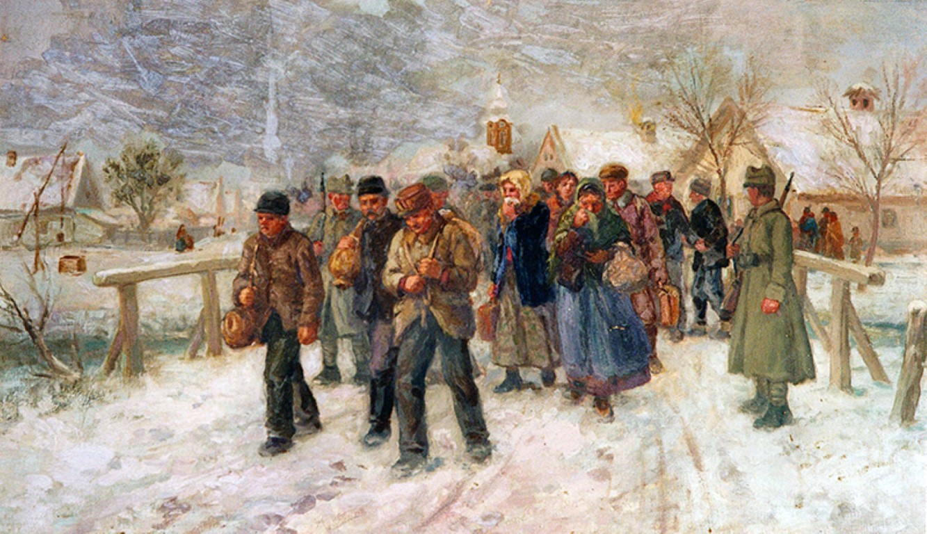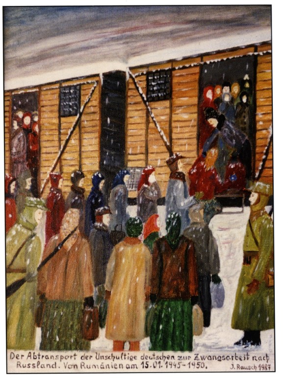 Szentandrás, Temes megye • Németeket gyűjtenek össze a Szovjetunióba történő deportálás céljából • Julianne Rausch festménye