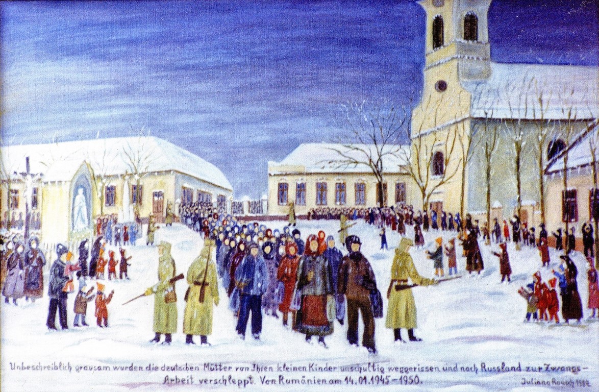 Néhány hónappal a második világháború vége előtt a Szovjetunió Államvédelmi Bizottságának 7161. számú rendelete, amelyet 1944. december 16-án írt alá Joszif Visszarionovics Sztálin, a Szovjetunió Kommunista Pártja Központi Bizottságának főtitkára, a következőt rendelte el: „Minden munkaképes német – 17 és 45 év közötti férfiak és 18 és 30 év közötti nők – mozgósítása és internálása a Szovjetunióba munkára, akik Románia, Jugoszlávia, Magyarország, Bulgária és Csehszlovákia Vörös Hadsereg által felszabadított területein tartózkodnak.” 1945 januárjától körülbelül 33 000 bánsági svábot „mozgósítottak”, ami azt jelentette, hogy a Szovjetunióba deportálták őket az úgynevezett újjáépítési munkálatokra. A túlzsúfolt marhavagonokban a román–szovjet határra szállított személyek között volt egy fiatal temeskenézi anya is. Kétéves kisfiát férje szüleinek gondjaira bízta, nem tudva, hogy viszontlátja-e majd valamikor. A háború zűrzavarában családok millióinak élete hullott darabokra. A nagyszülők által éveken át nevelt kisfiú sorsa különleges fordulatot vett. A gyermek, aki akkoriban még nem fogta fel a körülötte lévő világ tragédiáját, később pap, majd püspök lett: ő Martin Roos temesvári nyugalmazott püspök, akit a temesvári sajtóiroda munkatársai kérték, hogy idézze fel azokat az időket.