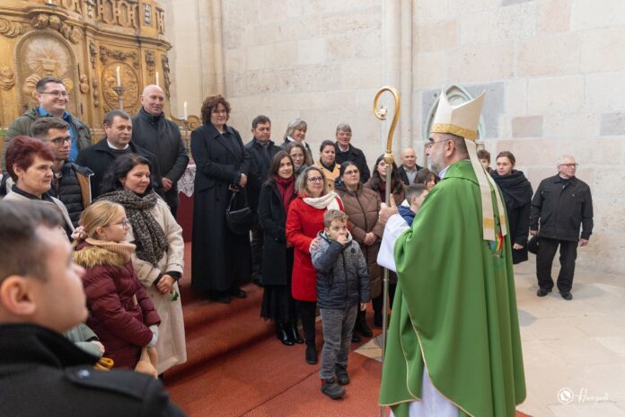 Kovács Gergely érsek a november 18-án a szlkesegyházban szolgált alfalvi kórus tagjaival. Fotó: Hunyadi / gyulafehérvári érsekség