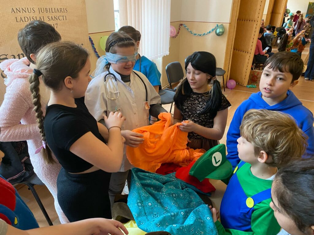 A vidám hangulatot tánc, közösségépítő játékok és a jelmezek bemutatása tette teljessé. Emellett a gyermekek öt különböző állomáson haladtak végig, ahol Assisi Szent Ferenc életéhez kapcsolódó feladatokat kellett megoldaniuk. Az állomások lebonyolításában a Szent László Római Katolikus Líceum tanárai, a Jézus Szíve-nőszövetség tagjai és önkéntes fiatalok segítettek.