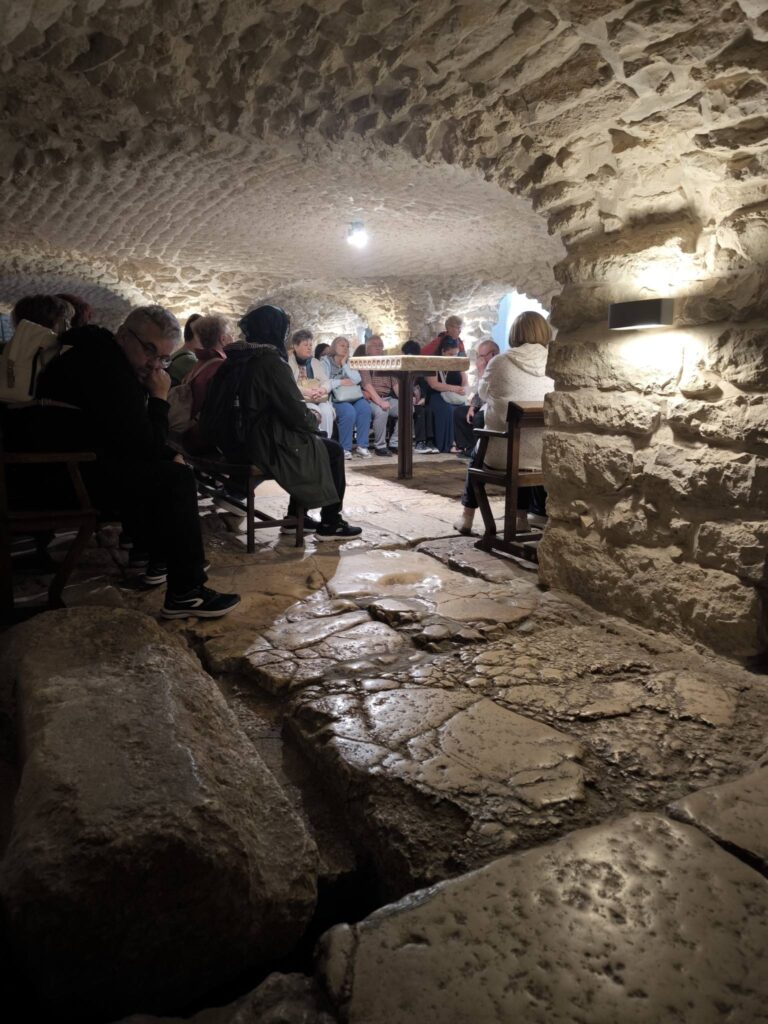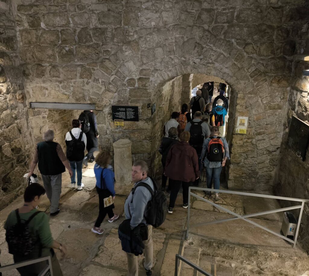 Két kedves barátunk, Attila és Viktor közben helyek és gondolatok irányában kalauzol bennünket: mutatják, mondják, terelnek bennünket, pallérozzák az elmét és a lelket egyaránt. Lemegyünk a Jézus korabeli járószintre is, körülbelül 10 méterre a föld alá, valószínűleg oda, ahol a hagyomány szerint Pilátus elítélte Jézust, és ahol a katonák megkoronázták. „Imádunk téged, Krisztus és áldunk téged! Mert te a szent kereszted által megváltottad a világot…” Nagy Heródes alakja is feltűnik, hiszen az Antónia-erőd ciszternájában „merülünk alá”, amely egykor kapcsolatban volt a Bethesda-fürdővel is – azzal a hellyel, ahol betegek sokasága feküdt az evangéliumi történet szerint.