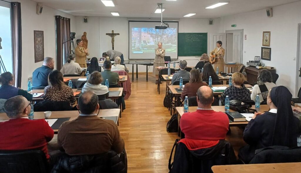 Hogyan szólítjuk meg Istent? Teremtő, Atya, Jó Pásztor… Ki az ember? Test és Lélek. Mi a legfontosabb kapcsolatunk Istennel? Az imádság. De ha a szív távol van Istentől, az imádság üres. Hogyan tudok segíteni a gyermekeknek megfogalmazni, ki számukra Isten? Mi az, ami közös bennünk Istennel? Hogyan lehet Istennel kapcsolatot teremteni? Mindezekre a kérdésekre, és még sok hasonlóra keresték a választ közösen az előadók és a résztvevők a képzés első napjának délutánján. Végül a nővérek az evangéliumok tanítására alapozva hozták közelebb Jézus Krisztus alakját: az irgalmas szívű Jézust, aki megérezte a hit érintését a vérfolyásos asszony történetében, a bátor szívű Jézust, aki ellenséges légkörben is gyógyít (Mk 3,1–6), a reményteli, befogadó szívű Jézust a Zakeussal való találkozáskor (Lk 19,1–10), a szerető szívű Jézust az utolsó vacsorán, aki tanítványainak a szeretet parancsát, később pedig az evangélium hirdetésének küldetését adja.