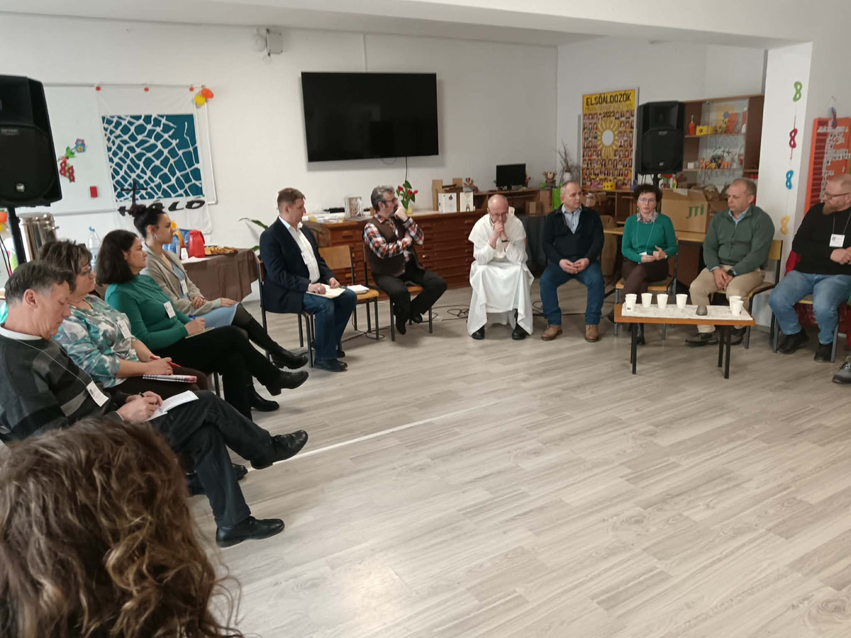 A találkozó mottója: „Gyertek, kövessetek, s én emberek halászává teszlek benneteket!” (Mt 4,19b). Ennek mentén folyt a délelőtti kerekasztal-beszélgetés, amelyen beszélgetőtársaim Kelemen Levente lelki kísérő és pedagógus, valamint Bátor Botond pálos szerzetes voltak. Nagy örömet jelentett számomra, hogy két ilyen nagyszerű, a lelkiekben elmélyült, hiteles emberrel együtt keresgélhettem a válaszokat a feltett kérdésekre. A beszélgetést Tímár Sándor vezette, aki mindannyiunkat az Istennel való együtt járásunk történetéről, annak zsákutcáiról és örömeiről kérdezett. Ezt a beszámolót kiscsoportos beszélgetés, majd közös ebéd követte. A délután folyamán pedig műhelymunkában tudták elmélyíteni a délelőtt elhangzottakat a résztvevők, ami gyakorlatias, játékos elemeket vitt bele a személyes megosztások sorába. Végül pedig az együtt töltött napot közös szentmisével koronáztuk meg, amely méltó befejezése volt a találkozónak.
