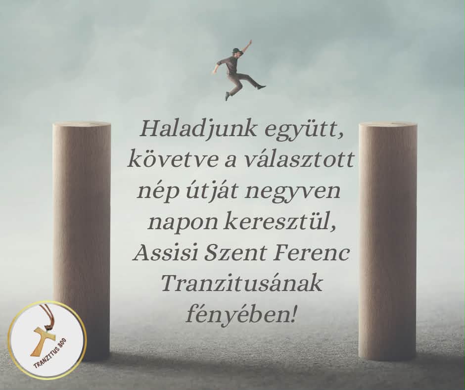A következő 40 napban lehetőségünk van együtt haladni a választott néppel az egyiptomi szolgaságból egészen az ígéret földjéig, közben pedig rácsodálkozhatunk Assisi Szent Ferenc életének kisebb tranzitusaira, vagyis lépéseire, amelyek hatására élete átalakult. Láthatjuk, hogy hogyan lépett mindig a nagyobb szeretet fele.