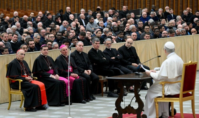 Kedves testvéreim, örülök, hogy megélhettem veletek ezt a megosztást. Amint nemrég emlékeztettem rá, első teendőnk az, hogy „őrizzük és fejlesszük hivatásunkat a megtérés és a megújult hűség állandó útján, mely sosem pusztán egyéni út, hanem arra kötelez bennünket, hogy gondját viseljük egymásnak” (Jövőt szülő hűség apostoli levél 13.). Így leszünk Isten szíve szerinti pásztorok, s így tudjuk legjobban szolgálni a római egyházmegyét. Köszönöm!