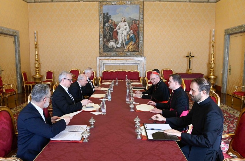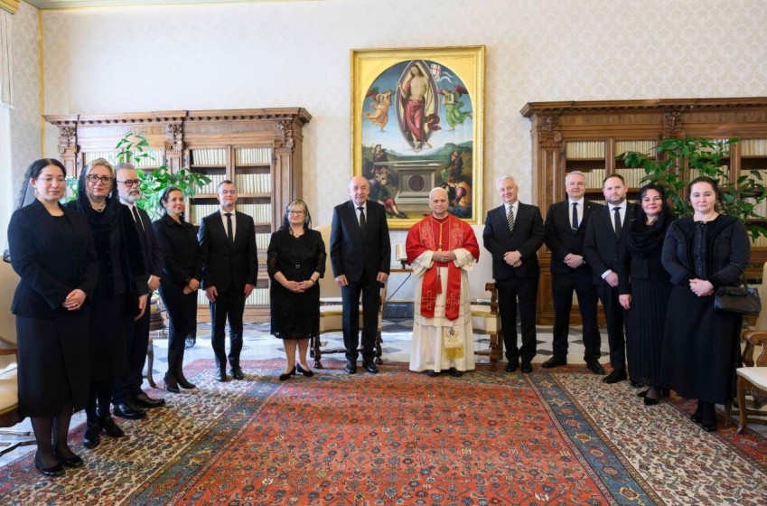 Szombaton délelőtt XIV. Leó pápa a vatikáni Apostoli Palotában audiencián fogadta Magyarország elnökét, Sulyok Tamást, aki ezt követően találkozott Pietro Parolin bíboros államtitkárral, valamint Mihăițǎ Blajzsal, a Szentszék Államokkal és Nemzetközi Szervezetekkel való Kapcsolatok Részlegének altitkárával.