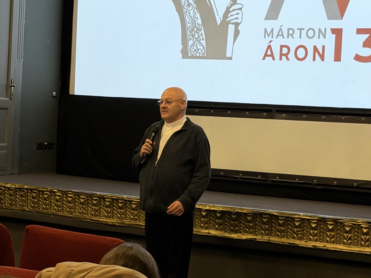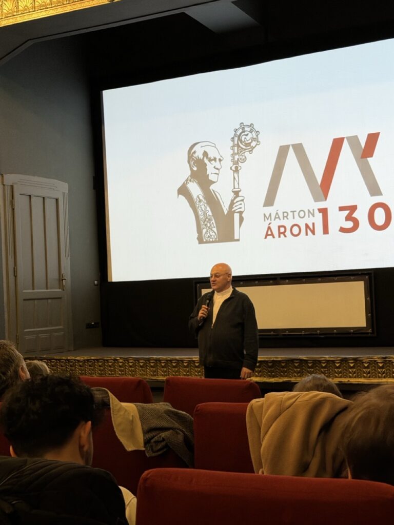 A beszélgetés az alkotói motiváció felől indult, majd szó esett arról is, hogy a film heroizál-e, esetleg tudatosan kerüli a kultuszteremtést, illetve hol húzódik a portré és az emlékmű határa. A rendező hangsúlyozta: kifejezett célja az volt, hogy Márton Áront mindenekelőtt emberként mutassa be. A személyes visszaemlékezések és anekdoták éppen ezt szolgálták, hogy a püspök ne csupán történelmi ikonként, hanem hús-vér emberként jelenjen meg a néző előtt.