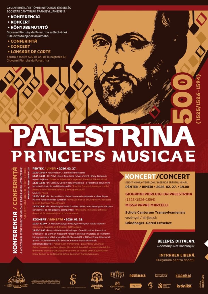 Kolozsvár adott otthont a Giovanni Pierluigi da Palestrina születése 500. évfordulója apropóján szerzett szakmai értekezésnek, kötetbemutatónak és koncertnek február legvégén. Az esemény apropóján Windhager-Geréd Erzsébettel, az eseményt szervező Schola Cantorum Transilvaniensis karnagyával beszélgettünk magáról a rendezvényről, illetve arról, hogy hazánkban miért tarthat érdeklődésre számot az olasz zeneszerző alakja és munkássága túl azon, a szűk szakma számára releváns tényen, hogy a reneszánsz egyházzene kiváló alkotója volt.
