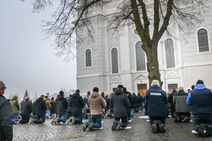 Hit, férfias kiállás és nyilvános tanúságtétel – Két éve indult a férfiak térdeplő rózsafüzérimája Csíksomlyón