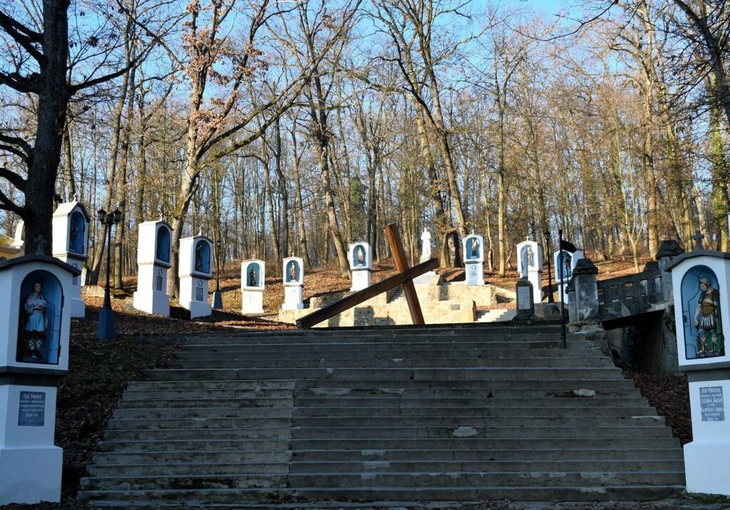 Igen. Ugyancsak a kegytemplom mögötti dombon, a keresztút végén lévő Szent Kereszt-kápolnától indulva bal oldalon találhatók a Dicsőséges út stációi, amelyek Jézus feltámadása utáni dicsőséges megjelenéseit követik végig egészen pünkösdig. Sajnos a II. világháború után az itt állomásozó orosz katonák, mielőtt 1952-ben hazamentek volna, a tizennégy stációból hetet ledöntöttek. Ezeket azóta sem állította helyre senki. Igaz, hogy a kommunista diktatúra éveiben nehéz lett volna a rongálást helyrehozni, az itt lakó ferencesek pedig idősek, betegek voltak, nem vállaltak egy ilyen nehéz munkát. Remélem, hogy a jó Isten ad annyi egészséget, hogy ezt a felújítást még befejezzem. Ha összegyűlik rá a szükséges pénzösszeg, egy év alatt végzünk a felújítással, cég, mérnök, munkás lenne hozzá. A Dicsőséges Út felújítása körülbelül 200-250 ezer lejbe kerülne. Az út fent, a domb tetején kezdődik, és lefelé vezet, és azt sikerült nagyjából meghatározni, hogy merre. Egyes helyeken ki is kell egyenesíteni. Nem szeretnénk köveket lerakni, mint a keresztút esetében, hanem kavicsos lesz. A nagyobb köveket felvinni nehéz is meg költséges is. A stációkból elvileg hetet fel kell újítani, hetet pedig újonnan készíteni. De mivel a régieknek nincs megfelelő alapjuk, jobb volna a még álló hét stációt is lebontani, és szilárd alapra újra felépíteni. Akkor legalább 150-200 évig nem kellene javítani.