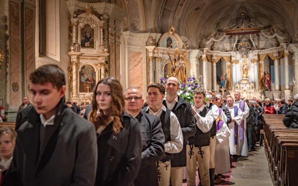 Mária szenvedése ma is tart. Osztozik Fia értünk vállat kínjaiban, az emberiség szenvedéseiben. Adolf Kolping azt mondta, hogy a szenvedés a kereszténység tűzpróbája. Ezen a próbán mindannyian átesünk, mindannyian részesülünk a szenvedés nehézségeiben. Franz Klapka a szenvedésről azt mondta, hogy minden körülöttünk lévő fájdalmat végig kell szenvednünk: Krisztus is szenvedett az emberiségért, az emberiségnek is szenvednie kell Krisztusért. A megpróbáltatások és nehézségek a keresztre tekintve nekünk is erőt kell adjanak. A Boldogságos Szűzanya ebben a szenvedésben áll mellettünk – tette hozzá, arra kérve a híveket, hogy szenvedéseikben kérjék a Szűzanya közbenjárását.