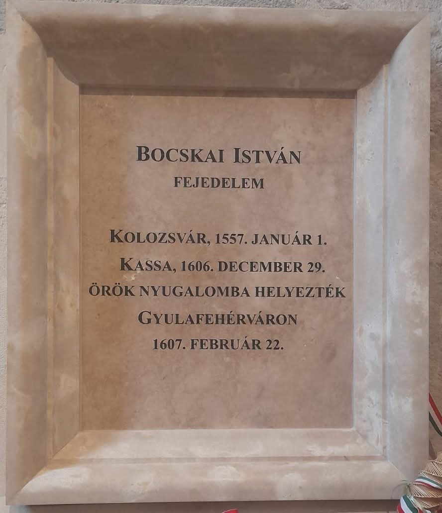 Miért éppen Gyulafehérvárt? Bocskai István 1606. december 29-én hunyt el Kassa városában, röviddel azután, hogy felkelése győzelmet aratott, és sikerült kiharcolnia a magyar rendek jogainak elismerését a Habsburg-dinasztia uralkodóival szemben. Bár Kassán érte a halál, végakarata és politikai jelentősége egyaránt Gyulafehérvárhoz kötötte. Gyulafehérvár volt az Erdélyi Fejedelemség fővárosa, a fejedelmi hatalom központja. Bocskai temetése tehát nem csupán búcsú volt egy embertől, hanem szimbolikus megerősítése annak, hogy ő Erdély törvényes és elismert fejedelme.Egy temetés üzenete a jövőnekA székesegyházban való temetés különleges jelentőséggel bírt. Ez a hely nemcsak egyházi központ volt, hanem az erdélyi államiság egyik szimbolikus szíve is. Bocskai nyughelye azt hirdette: Erdély képes volt saját sorsát alakítani, és voltak vezetői, akik ezért áldozatot hoztak.Bocskai István temetése Gyulafehérváron ma is emlékeztet arra, hogy a székesegyház nem csupán kövek és falak együttese, hanem történelmünk őrzője – fejedelmek, döntések és sorsfordító pillanatok tanúja.A székesegyház többszöri pusztítása miatt ma már csak a néhai síremlékek kis része maradt fenn. Az elpusztult síremlék helyett ma már csak modern feliratos tábla állít emléket a fejedelemség-kor meghatározó alakjának, Bocskai Istvánnak.