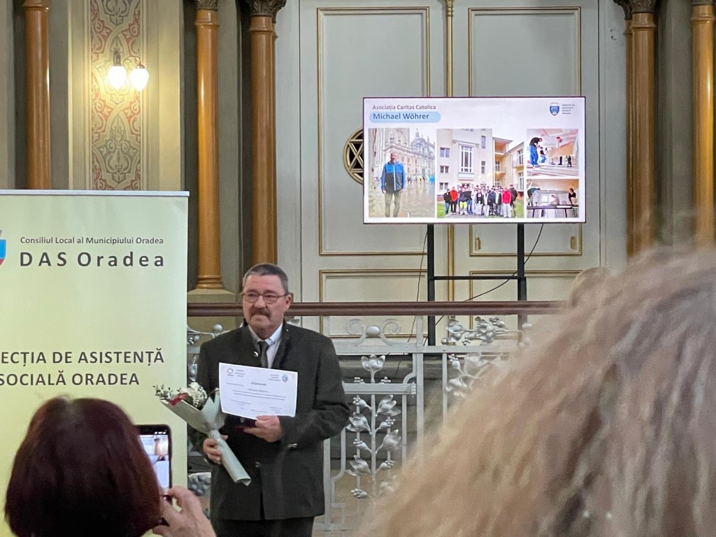 Az önzetlenül másokért dolgozó embereket ünnepelték Nagyváradon a Szociális Ellátási Igazgatóság (DASO) által szervezett Önkéntesek Gálájának keretében március 5-én. Örömmel és büszkeséggel számoltak be a nagyváradi Caritas Catolica honlapján arról, hogy a szervezet jelöltjeként Michael Wöhrer is a díjazottak között volt. Az osztrák építőmérnök és egykori tanár immár több mint egy évtizede szervez olyan önkéntes munkatáborokat, amelyek keretében osztrák diákok érkeznek Nagyváradra, hogy hozzájáruljanak az egykori Szent József Kórház épületének felújításához, amely ma a Caritas székhelyének ad otthont.