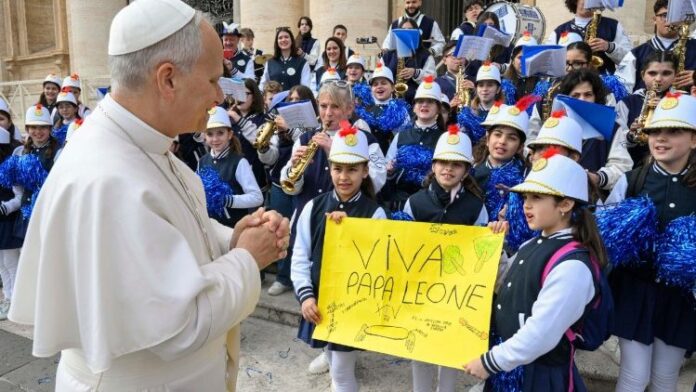 Ez azt jelenti, hogy az egyházban helye kell, hogy legyen mindenkinek, és valamennyi keresztény arra hivatott, hogy hirdesse az evangéliumot, és tanúságot tegyen minden környezetben, ahol él és működik. Így mutatja meg ez a nép katolicitását, befogadva a különböző kultúrák gazdagságát és lelki javait és egyszersmind felkínálva nekik az evangélium újdonságát, hogy megtisztítsa és fölemelje őket. Ebben az értelemben egy az egyház, mégis magában foglal mindenkit – fejtette ki Leó pápa, majd ezzel a gondolattal zárta szerdai katekézisét: Nagyon reményteli jel – főként napjainkban, amikor annyi konfliktus és háború vesz körül minket – tudni, hogy az egyház olyan nép, amelyen belül a hit erejében együtt élnek különböző nemzetiségű, nyelvű vagy kultúrájú férfiak és nők. Olyan jel, amelyet az emberiség szívébe helyeztek, mint az egység és a béke felhívása és próféciája, amelyre az Atyaisten hívja gyermekeit.
