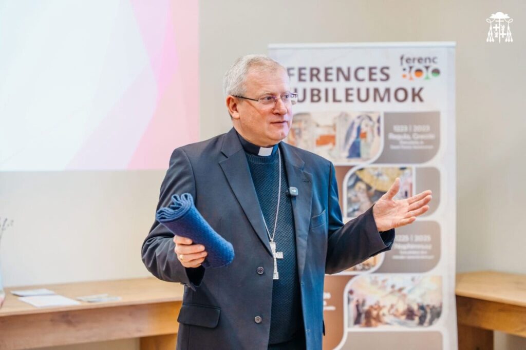 „Ez a különleges alkalom számomra azért volt igazán értékes, mert lehetőséget adott arra, hogy elcsendesedjem, és visszataláljak belső békémhez – ahhoz a mélyebb csendhez, ahol a bennem élő Istenarc tükröződik. A mai világ olyan gyors tempóban sodor mindenkit, hogy a pillanatok szinte észrevétlenül suhannak el. Ebben a rohanásban könnyű megfeledkezni arról, hogy nemcsak a körülmények alakítják az életet, hanem az is, ahogyan a belső hozzáállás, a történésekhez való viszony és az élet egészéhez való odafordulás formálja a mindennapokat. Pedagógusként gyakran tapasztalom, hogy a külvilág elvárásai nagy súllyal nehezednek rám, miközben az életem más területein is magas mércét állítok magam elé. A mindennapok Isten- és boldogságkeresésében gyakran merül fel bennem a kérdés: vajon képes vagyok-e a béke eszköze lenni ott, ahová a hivatásom szólít? Tudok-e úgy jelen lenni – különösen a rám bízott gyermekek között –, hogy szavaimmal, döntéseimmel és jelenlétemmel a szeretetet és a békét erősítsem? A különleges találkozás megerősítést adott abban, milyen fontos Istenre bíznom a döntéseimet. Amikor hittel a szívemben ki tudom mondani: Uram, legyen meg a te akaratod!, az élet eseményei is új értelmet nyernek. A bizonytalanság lassan bizalommá változik, és nemcsak a körülöttem lévő világ alakul át, hanem a belső látásmódom is. A váratlan kihívások idején igyekszem tudatosan visszatérni ehhez a szemlélethez, és imádságban kérem, hogy Isten akaratát észrevegyem azokban a helyzetekben, amelyek próbára tesznek. Assisi Szent Ferenc lelkülete – az egyszerűség, a szeretet és a béke útja – arra emlékeztet, hogy a valódi megújulás mindig belül kezdődik. A ferences jubileumi év mottója – Építsd újjá egyházamat! – most számomra azt jelenti, hogy az újjáépítésnek bennem kell elkezdődnie. Csak akkor tudom hitelesen betölteni a rám bízott feladatokat, ha először én magam újulok meg. Hiszem, hogy pedagógusi szolgálatom nem merül ki abban, hogy pusztán a tudást adjam át. Sokkal inkább jelenlétet, figyelmet és iránymutatást kell nyújtanom – a kor szellemiségéhez igazodva, a hitelesség jegyében, mégis a keresztény és kulturális értékeket megélve –, hogy magyartanárként a különböző irodalmi alkotásokon és a saját életszemléletemen keresztül a gyermekeket Istenhez is közelebb vezethessem. Hálás vagyok a lehetőségért, és köszönöm a ferences testvér építő, mély gondolatait.” (Károlyi Gabriella)