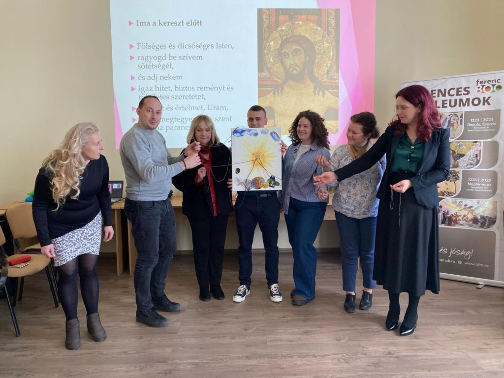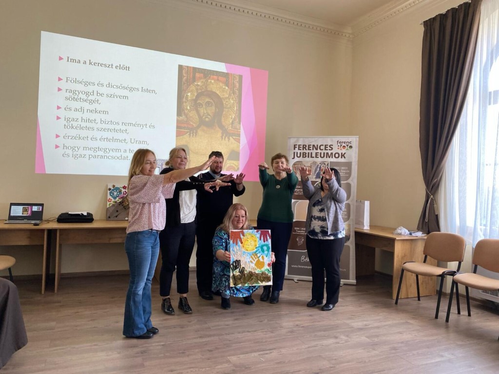 A lelki nap lehetőséget kínált az elcsendesedésre, az imádságra és a személyes lelki feltöltődésre, hogy pedagógusi küldetésünket új fényben szemlélhessük, és megerősödött lélekkel térhessünk vissza mindennapi szolgálatunkhoz. A program részeként kiscsoportos beszélgetések, közös alkotás, vezetett ima, valamint Szent Ferenc életének egy-egy jelentős eseményét bemutató gyakorlat segítette az elmélyülést és a személyes tapasztalatszerzést. A lelki nap így nemcsak elmélkedésre, hanem közösségi megosztásra és aktív lelki részvételre is lehetőséget adott.