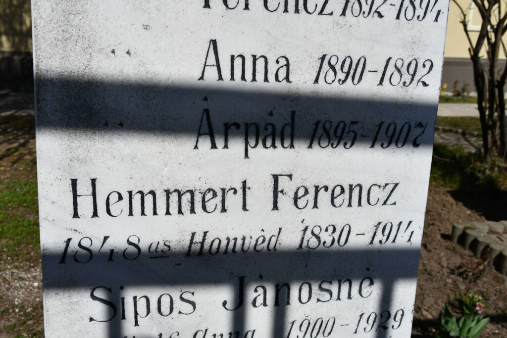 Hemmert Ferenc honvéd alakját Miklósik Ilona temesvári muzeológus, művészettörténész idézte meg, aki számos érdekes adatot közölt több ismert bánsági 1848-as hősről is: „A sírkő alatt egykoron nyugvó honvéd nagyon fiatalon állt be a seregbe, 17 évesen ő már a honvédség keretéhez tartozott. A 49-es év végére törzsőrmester lett. Hemmert Ferencről azt kell tudnunk, hogy Kisőszön született, echte német családban, aki viszont a szabadságharc idején a magyar szabadság eszméi mellett tette le a voksát. Hősnek nevezhetjük azért is, mert kétszer megsebesült, a bal kezén és a jobb lábán. Ott volt a világosi fegyverletételnél, onnan jött haza gyalog, mint a legtöbben. Temesváron hunyt el 1914-ben. Nem furcsa, hogy német nemzetiségű, bánsági születésű emberek közös eszme mellé állnak. Nem egyedül az ő nevét említhetjük 1848 kapcsán, viszont sajnos többen eltűntek. Már nem találjuk meg a szintén német nemzetiségű Fockner ezredes sírját sem a józsefvárosi temetőben, aki a mehádiai harcok alatt védte Kossuthot. Nem találjuk meg Karagyéna Miklóst sem, aki horvát volt. De említhetnénk talán az izraelita, magyar–német anyanyelvű Menczer családot is, ahonnan az apa és négy fia harcolt a honvédek zászlaja alatt.”
