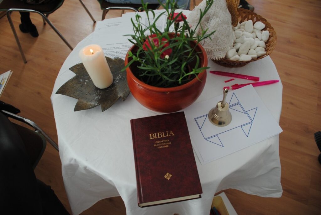 A szentegyházi székhelyű Szent Gellért Alapítvány csapata idén második alkalommal töltött el egy tartalmas hétvégét elköteleződni vágyó fiatal párokból álló népes csapattal, összesen tizenhárom párral. A március 13–15. között tartott eseményen, a Gyulafehérvári Családpasztoráció jegyeskurzus-anyagát követve, immár két házaspár vezette a témákat a párkapcsolatuk megerősítésére törekvő és egyházi házasságra készülő fiataloknak. A kilenc évvel korábban fiatal házasként, immár családpasztorációs és Szent Gellért-es munkatársként a Gergely házaspár, Tímea és Balázs programvezetőként volt jelen.