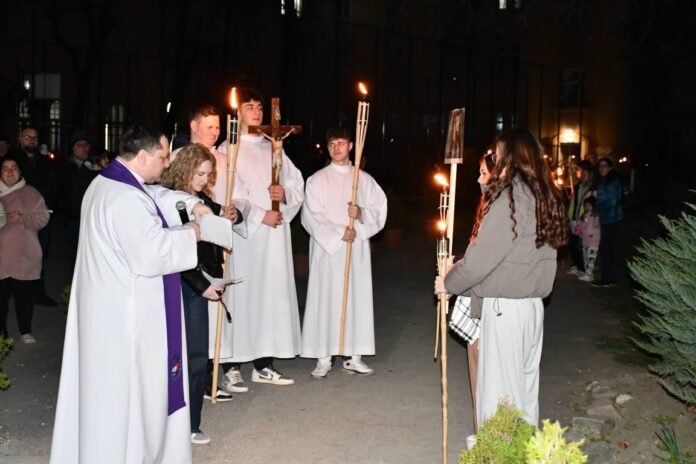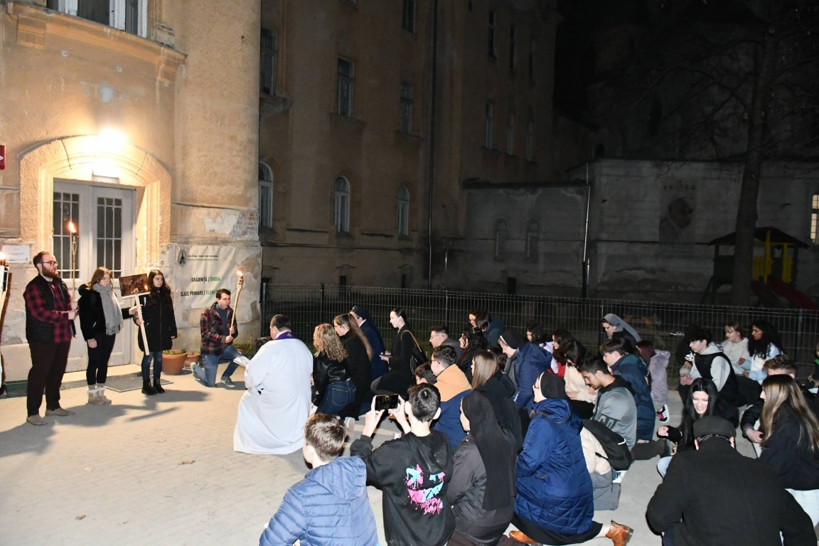 A nagyböjt idején a Temesvári Egyházmegyei Ifjúsági Központ által szervezett keresztúti ájtatosság több mint húszéves hagyományra tekint vissza. Néhány éve ez a lelki program a Gerhardinum Római Katolikus Teológiai Líceum udvarán kap helyet. Idén március 18-án, szerdán este 8 órakor tartották meg, mintegy 140 fiatal részvételével, akik közül sokan a város és az egyházmegye plébániáiról érkeztek, csatlakozva az iskola tanulóihoz.
