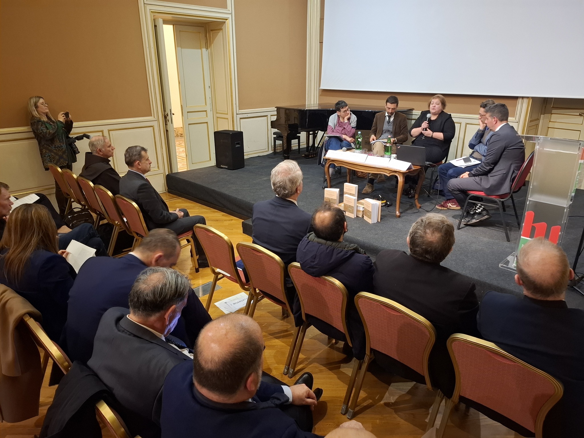 Az előadók: Alessandro Boccolini a Viterbói Tuscia egyetemről, Cristina Codarcea, a Bukaresti Román Akadémia Dél-Kelet Európai Kutató Intézetének tanára, aki francia nyelven tartott előadást, Andrea Carteny, a Római La Sapienza Egyetem történész-tanára, Maria Teresa Fattori, a Teramói Tudományegyetem oktatója. Végül online összeköttetés révén a nagy kivetítőn Ovidiu Olar román történész is felszólalt, aki az Osztrák Tudományos Akadémia Habsburg-Monarchia és a Balkán-térség kutatóintézetének a munkatársa.