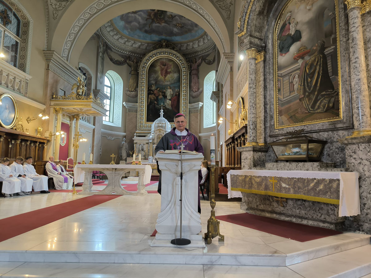 Homíliájában a püspök a napi szentírási olvasmányok nyomán az igazság és az emberi ítélkezés kérdését állította a középpontba. Rámutatott: az ember hajlamos arra, hogy saját véleményét és igazságát abszolutizálja, miközben háttérbe szorul az igazi igazság, amely Istentől származik. Napjainkban gyakran nem az igazság keresése áll a középpontban, hanem az, hogy ki képes hatásosabban érvényesíteni saját álláspontját, így sokszor a hangosabb vagy ügyesebb meggyőzés kerül előtérbe az igazság rovására. A főpásztor kiemelte: az igaz ember sorsa gyakran az, hogy megpróbáltatások között kell helytállnia. A gonosz logikája szerint az igazat próbára teszik, sőt el is akarják hallgattatni. Ezzel szemben Isten gondolkodása egészen más: ő nem az emberi erőszak és önérvényesítés útját járja, hanem az irgalom és a szeretet útját kínálja. A szeretet nem pusztán érzelem, hanem olyan áldozat, amelyet az ember készséggel hoz meg a másikért. A világ sokszor hamis ígéretekkel kecsegtet, és az ember könnyen saját „isteneket” alkot magának, legyen az élvezet, siker vagy hatalom. Ezek azonban végső soron csalódást okoznak. Az igazi beteljesedés csak akkor születik meg, ha az ember megnyílik Isten szeretetére, és ebből a szeretetből tanul meg mások felé fordulni, még azok felé is, akik elutasítják őt. Ezért arra buzdította a híveket, hogy ne a megosztottság, hanem a kiengesztelődés útját válasszák. Ez az alapja a valódi békének, amely nem csupán politikai megállapodásokban, hanem az emberi szívek megváltozásában gyökerezik.