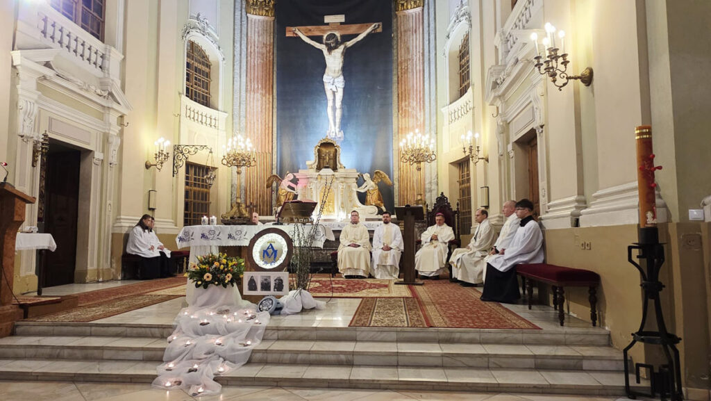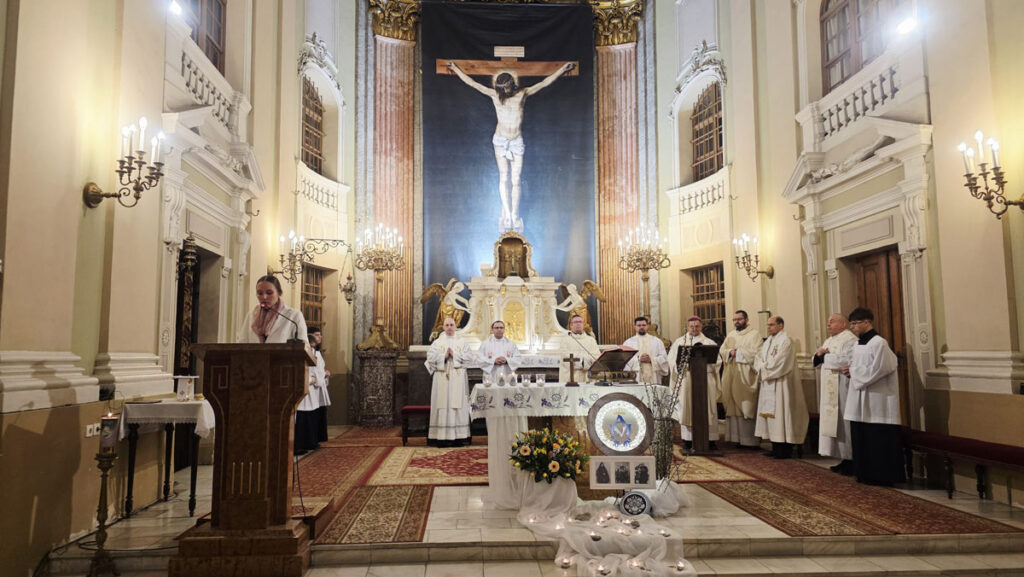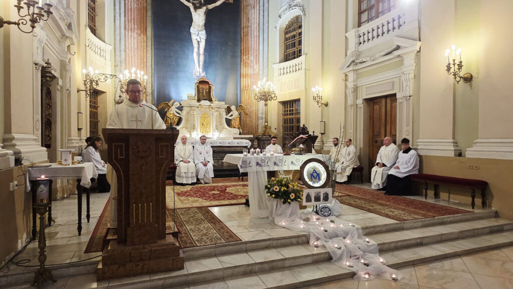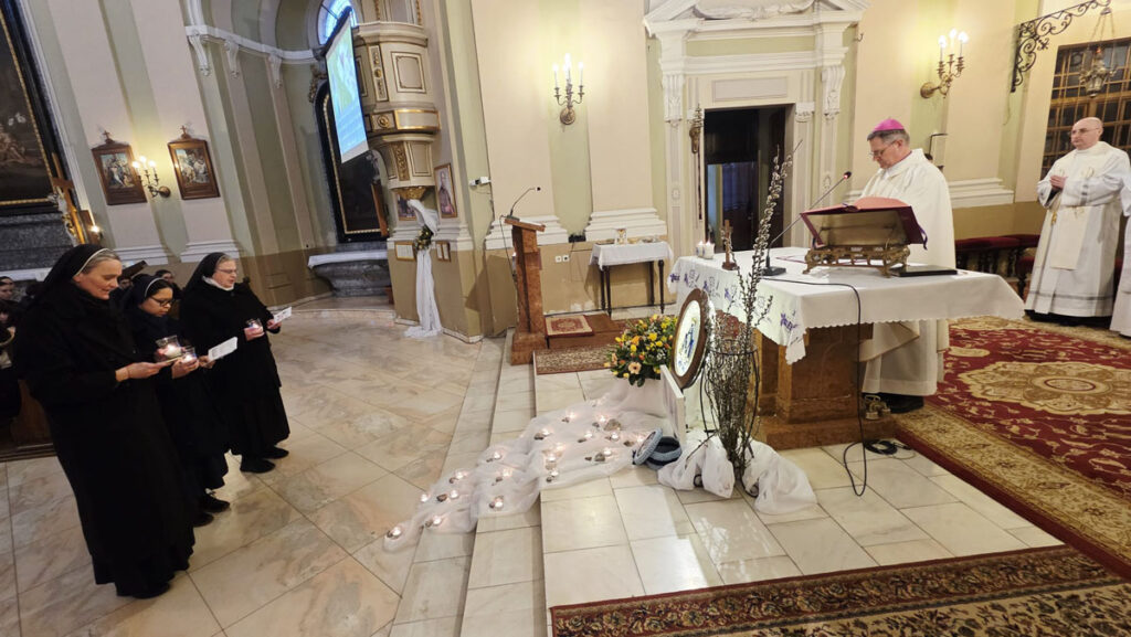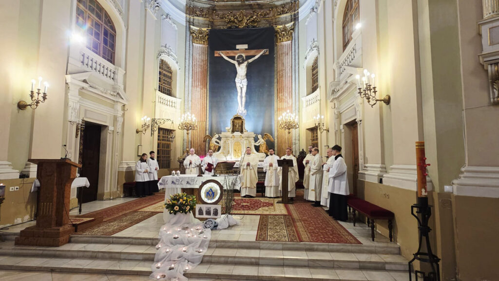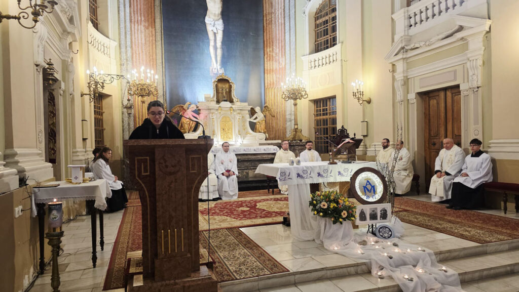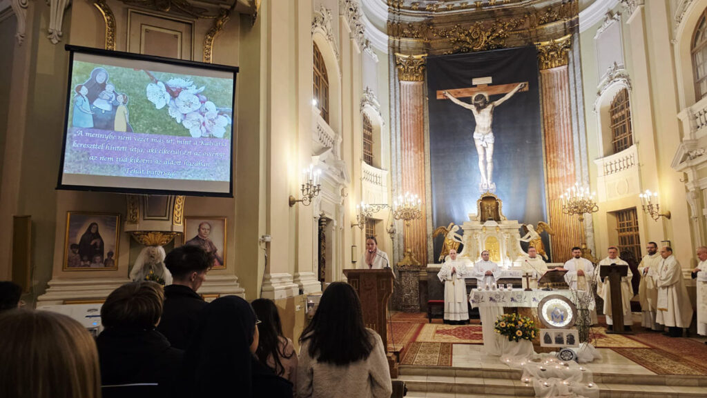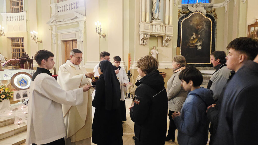 Az evangélium felolvasását követően a közösség megható pillanatnak lehetett tanúja: a három piarista nővér – Ágnes, Bori és Dania nővérek – ünnepélyes keretek között megújították szerzetesi fogadalmukat, megerősítve Krisztushoz és hivatásukhoz való hűségüket.