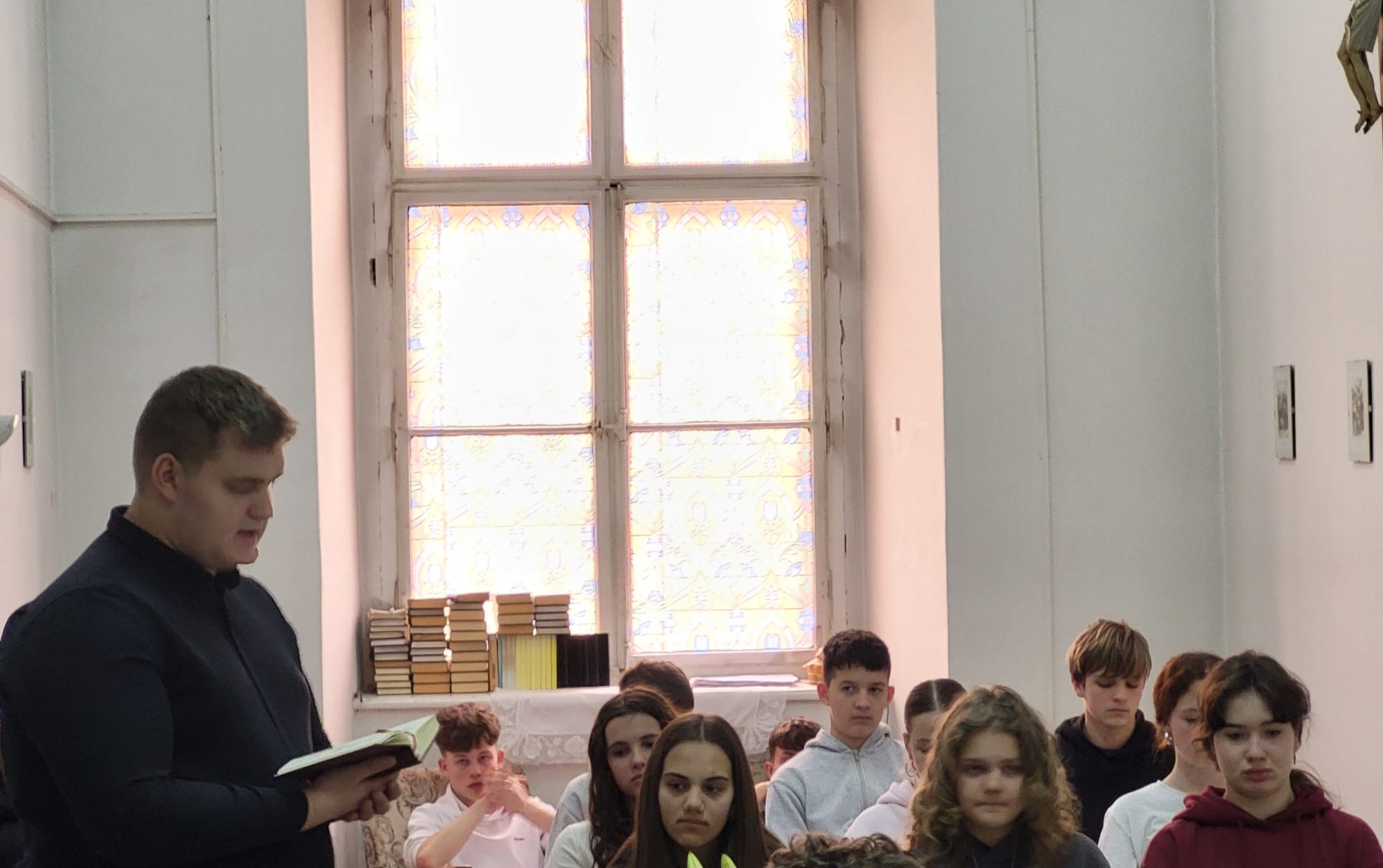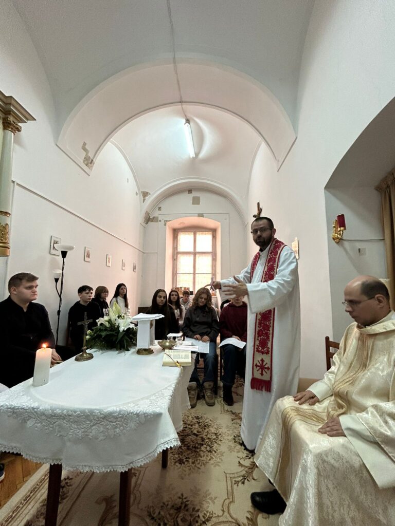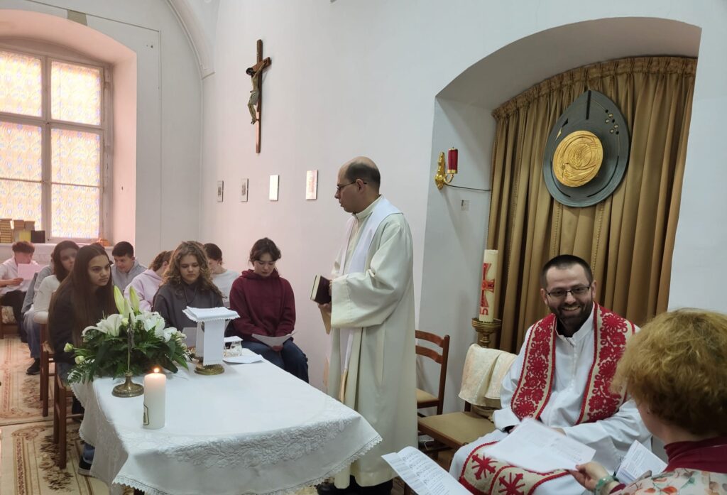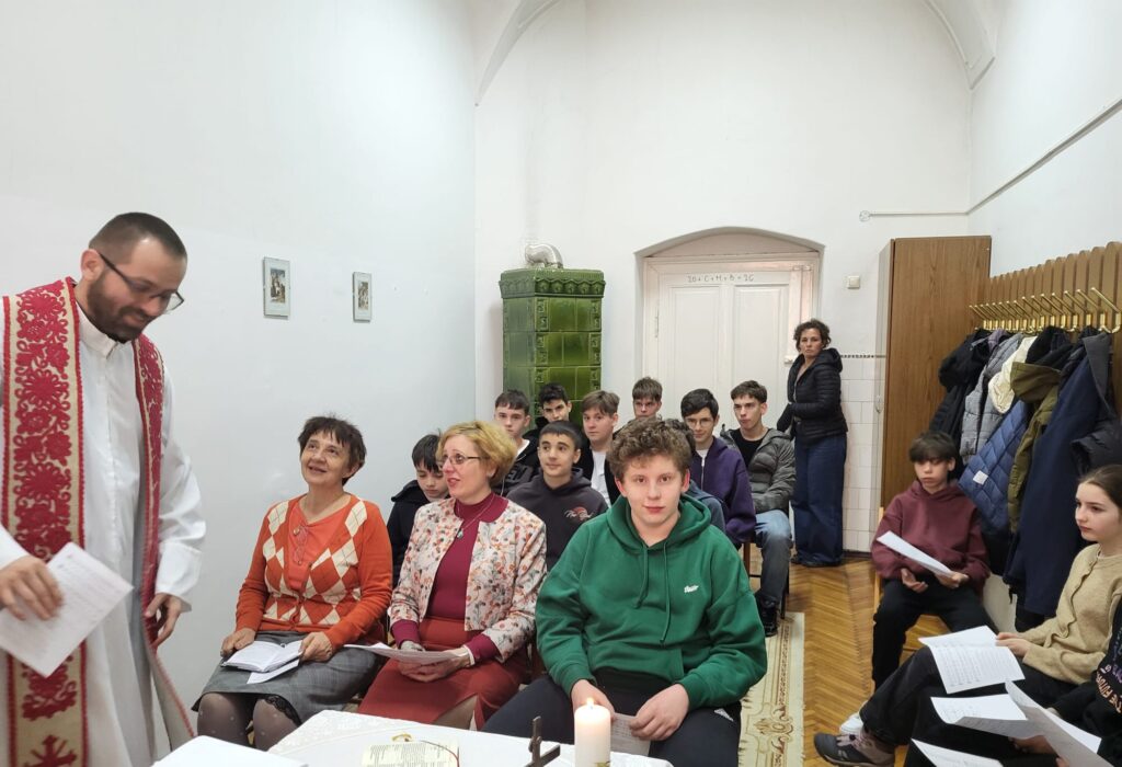 A szentmisén részt vevő VIII-osok Faragó István I. éves, zeneszakos diák vezetésével énekelték a népénekeket, néhány tanár és az iskola igazgatója, Schuller Hajnal is részt vett az ünneplésen.
