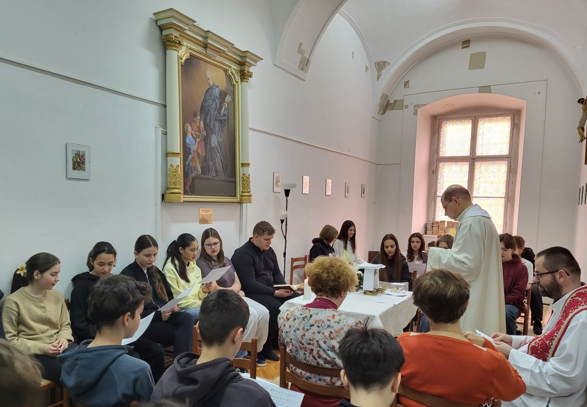 Szent József a patrónusa a kolozsvári Báthory-líceum kicsiny kápolnájának. Az iskolában lelkivezetői munkát végző piarista szerzetesek vezetésével ünnepelték a búcsút.