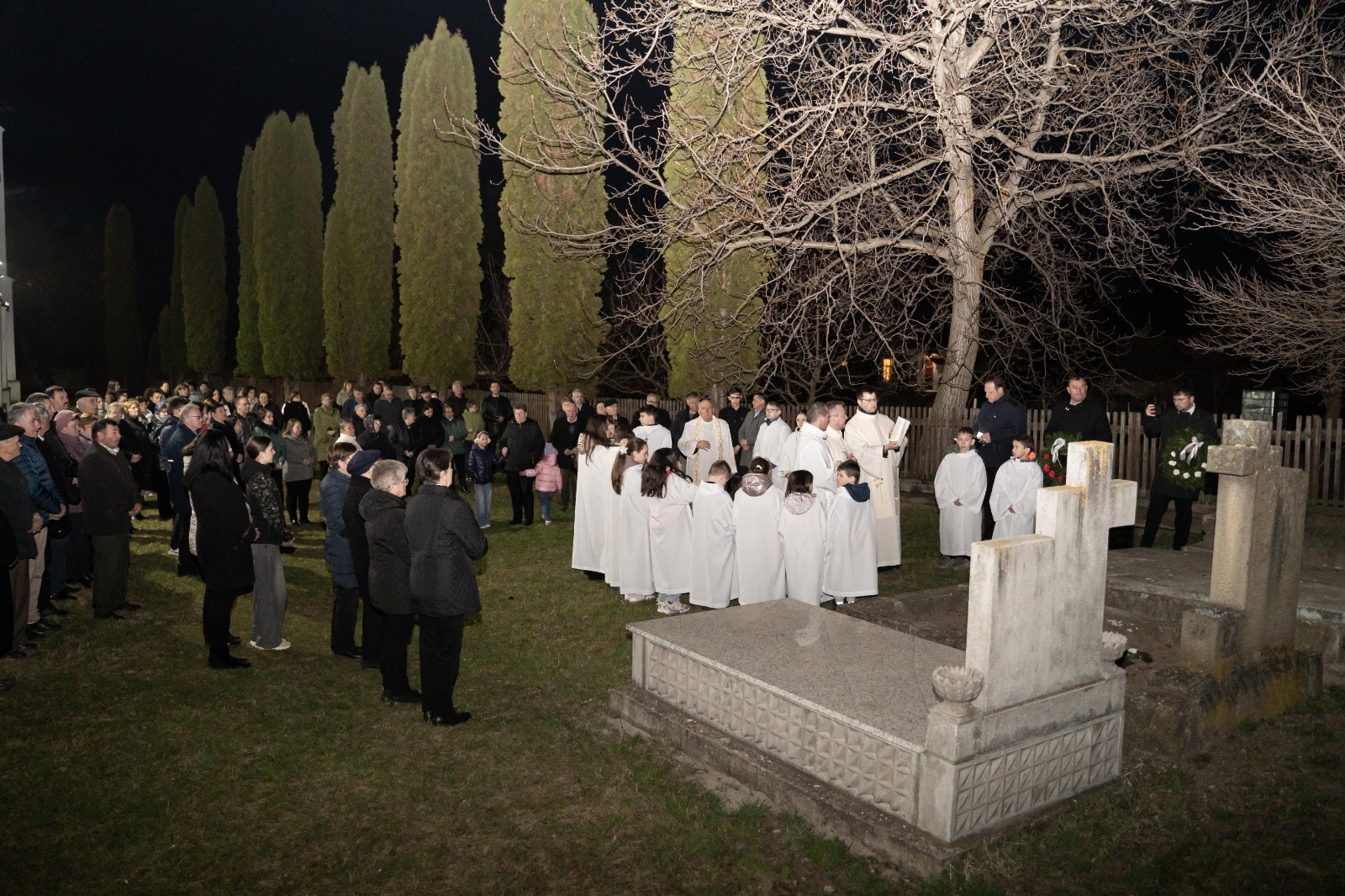 Az ünnepi megemlékezés Fekete János vértanú-főesperes sírjánál zárult, ahol az egybegyűltek – a sírjára a kegyelet koszorúit elhelyezve, az örök világosságot szimbolizáló gyertyát meggyújtva – imádkoztak egykori plébánosuk lelki üdvösségéért.