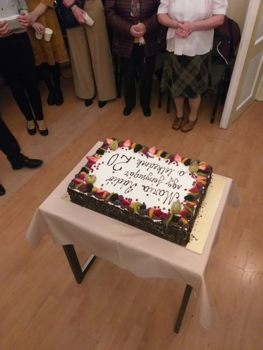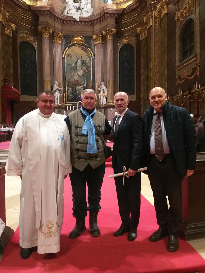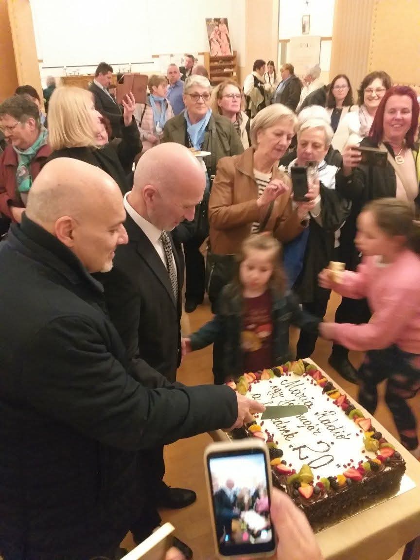 A szentmise végén Szatmári Ferenc alapító elnök köszöntő beszédében emlékezett a múltra, az indulásra, hálát adva mindenki munkájáért, majd kijelentette, bár bizonytalan időket élünk, ő bizalommal tekint a jövőbe, mert tudja, a Szent Szűz oltalma alatt vagyunk.