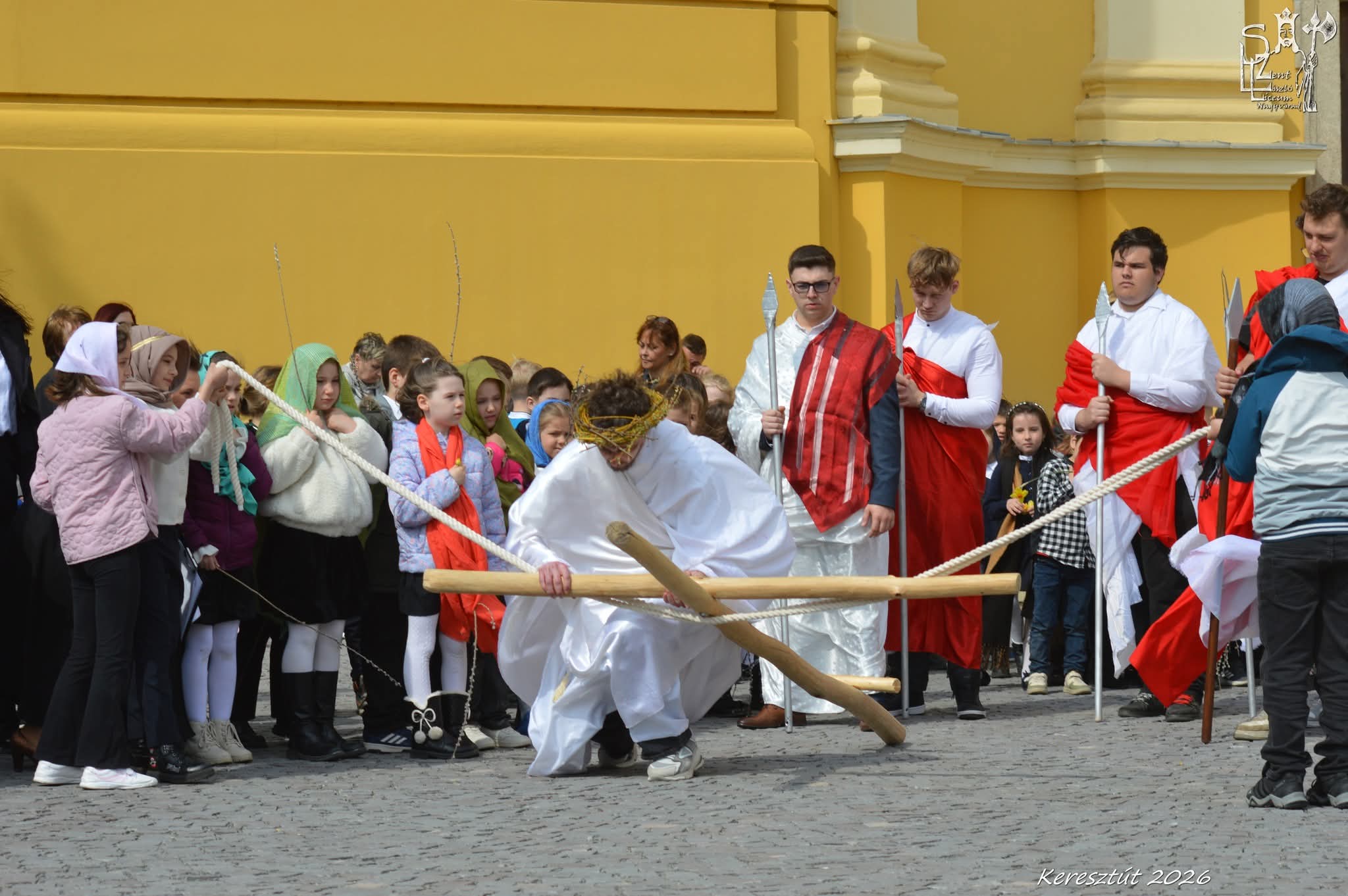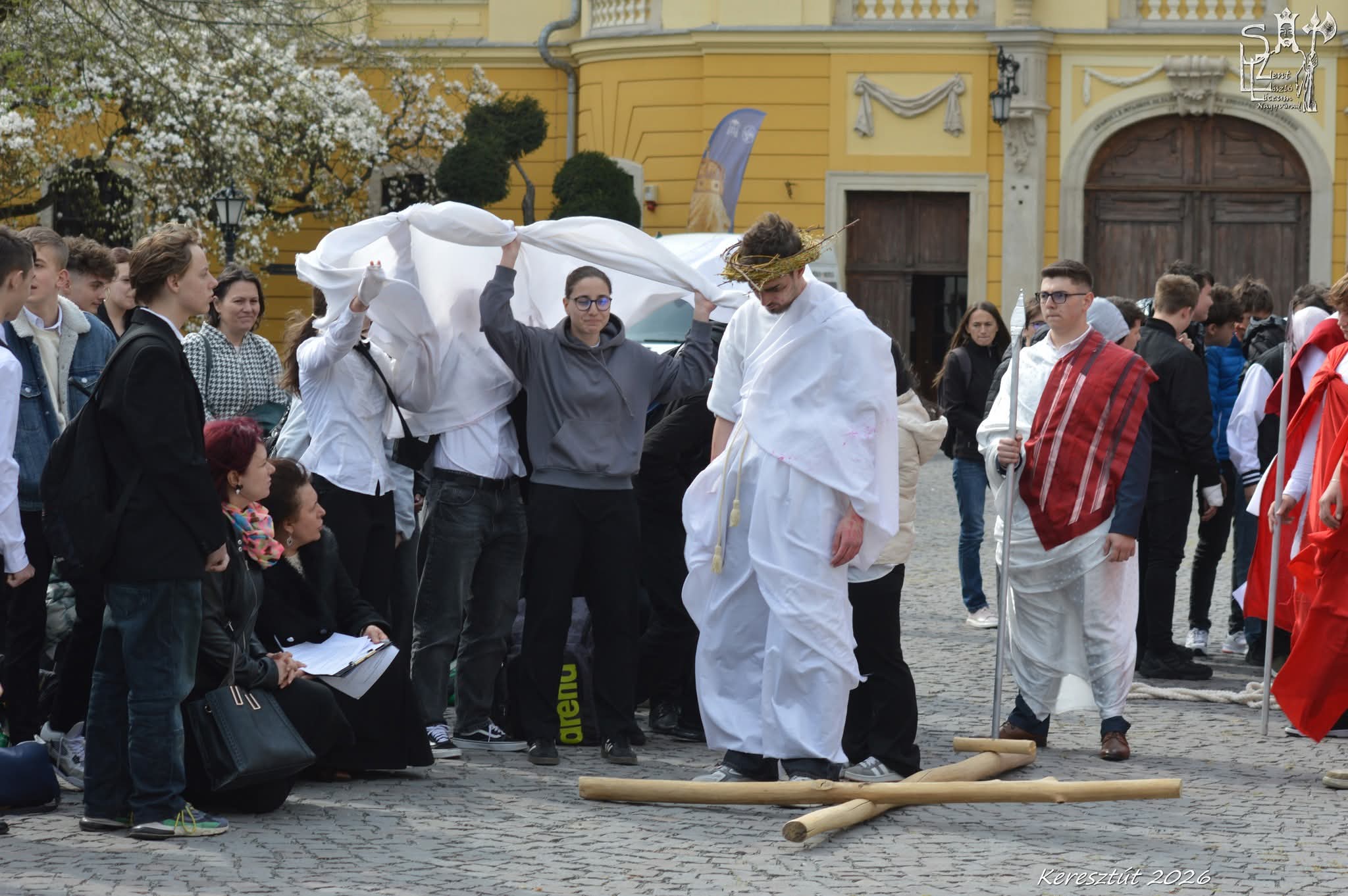 ,,Úgy szerette Isten a világot, hogy egyszülött fiát adta érte, hogy mindaz, aki hisz benne, el ne vesszen, hanem örök élete legyen.” (Jn 3,16) A Szent László Római Katolikus Teológiai Líceum diákjai passiójátékban jelenítették meg Jézus szenvedéseit március 27-én, pénteken a székesegyház előtti téren.