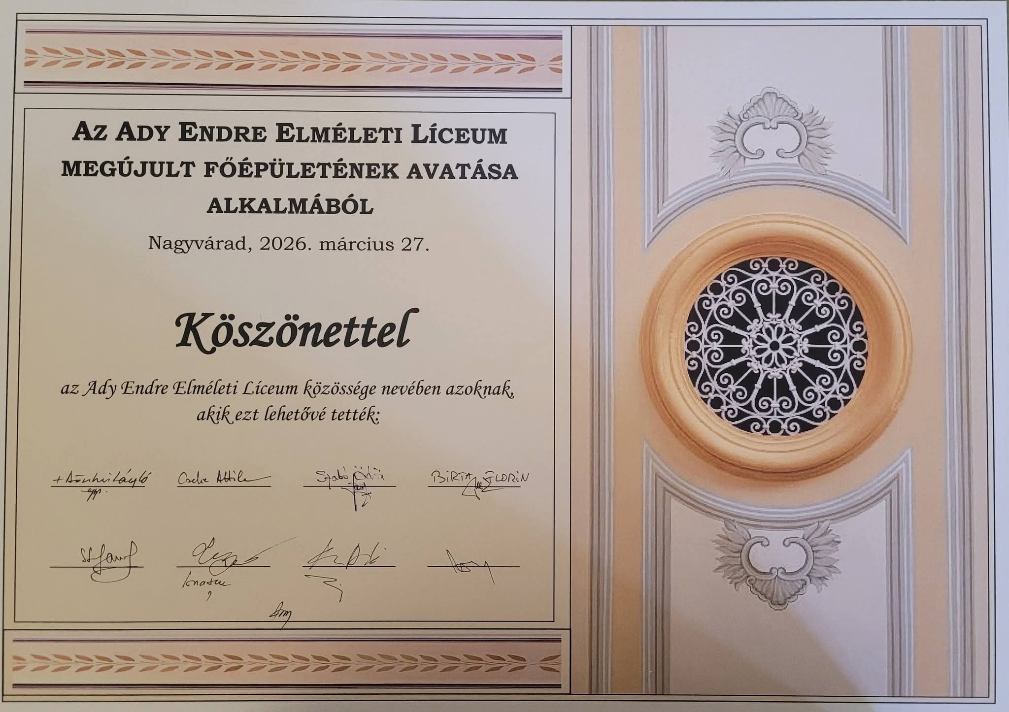 A váradi egyházmegye tulajdonában lévő épület felújításának szükségességét Böcskei László megyés püspök kezdeményezte, az erre vonatkozó szerződést 2022-ben írta alá a főpásztor és Cseke Attila fejlesztési miniszter. Négy év után március 27-én adták át a kívül-belül megújult épületet. ,,Nem elég azonban csupán annyit tenni, hogy kövekből épületeket emelünk, ugyanis az élő kövek, a falaik közt nevelkedő, tanuló és hivatásukat teljesítő emberek teszik igazán értékessé az épületeket” – jelentette ki a főpásztor.